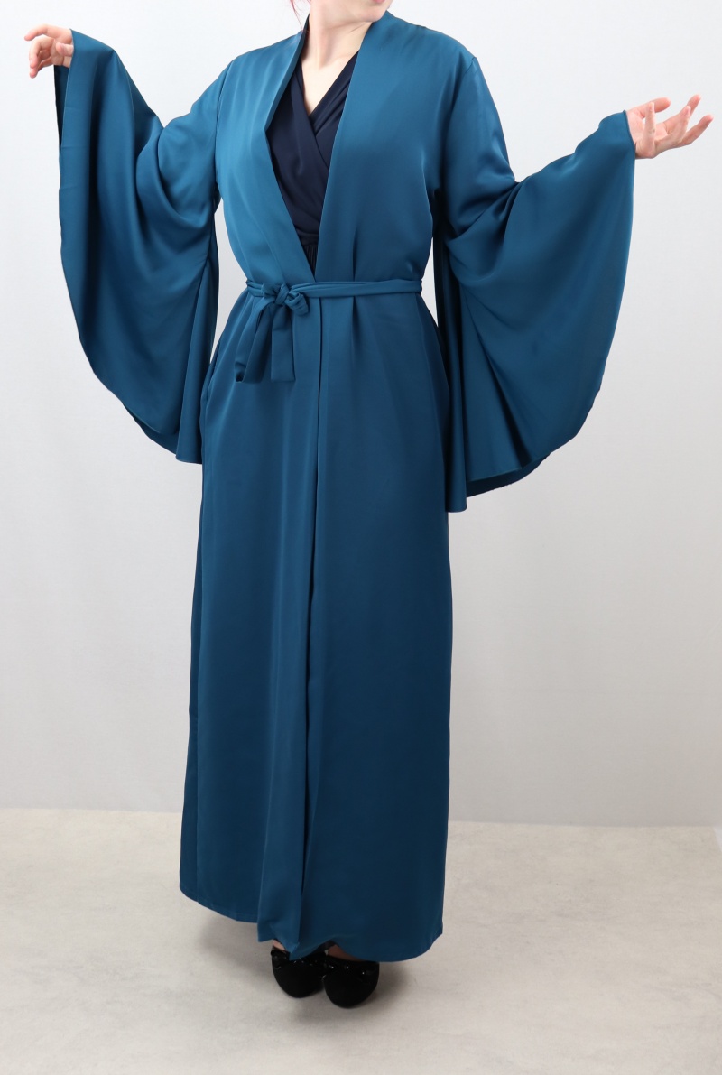 Ce kimono se porte ouvert ou fermé grâce à sa ceinture assortie fournie.