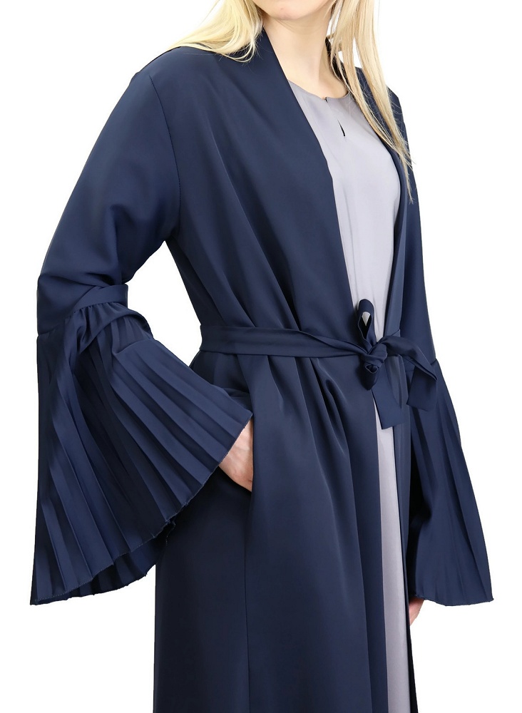 Kimono avec manches évasées plissées - Couleur Bleu Nuit Vetement & Accessoire