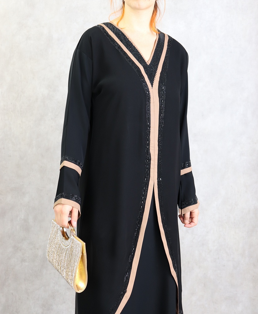 Robe Abaya Dubaï noire de qualité avec strass et diamants - REF. 38147 (45.00 €)