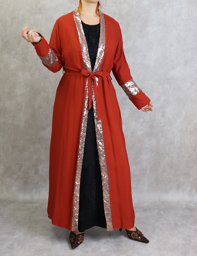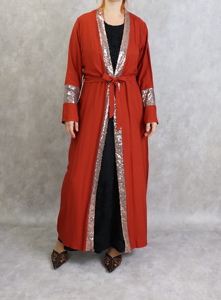 Kimono long, ceinture à passants assortie, matière fluide et agréable, strass sur les mi manches ainsi que sur le pourtour.
