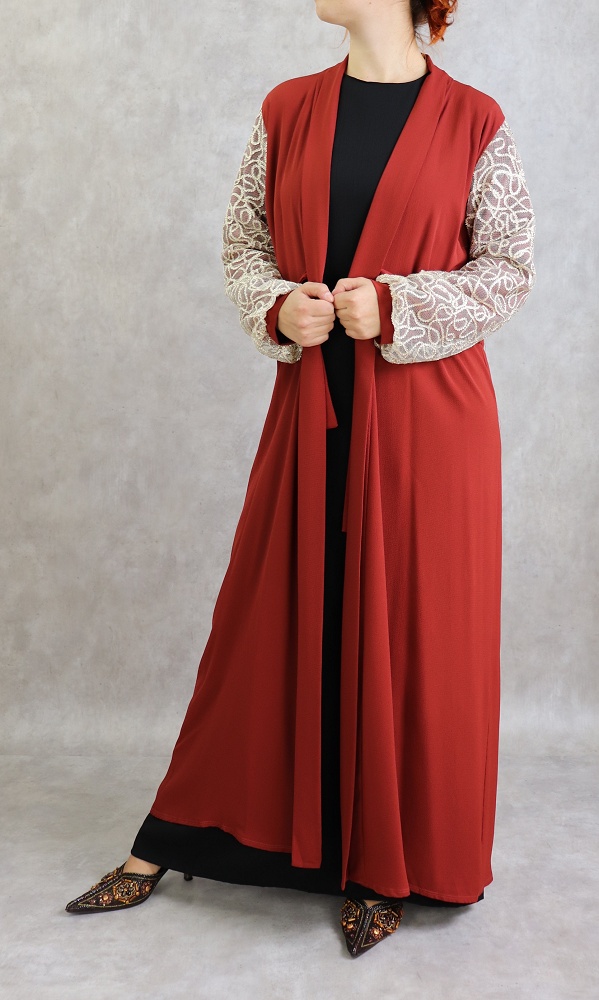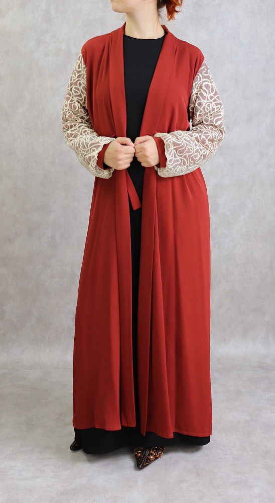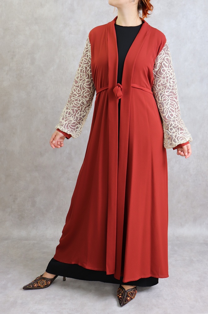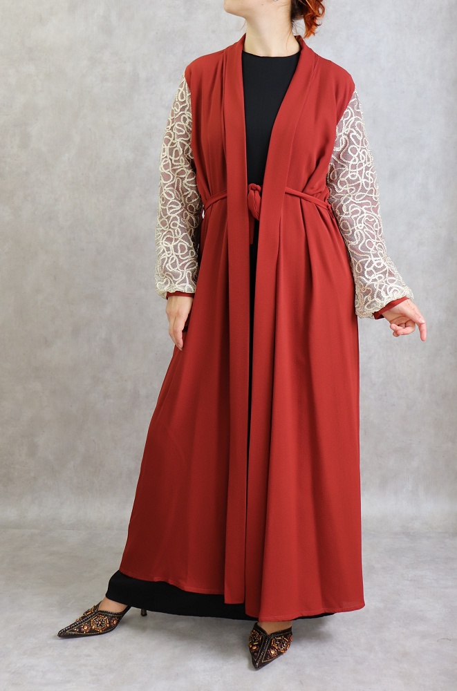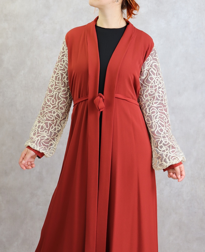 Kimono aux manches brodées - Couleur rouille Vetement & Accessoire