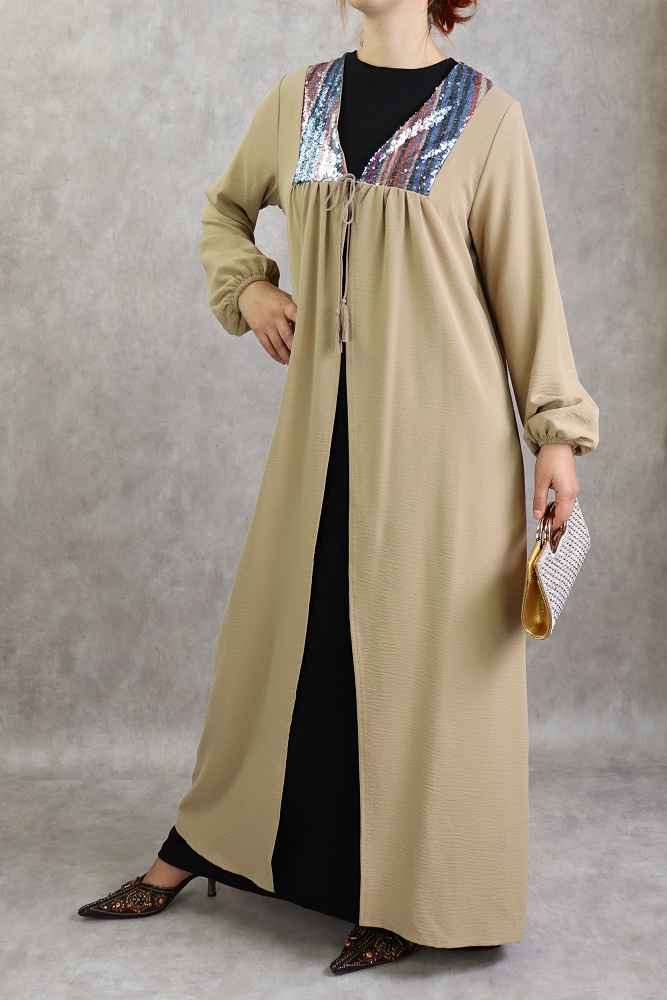 Cardigan maxi-long tricoté en grosses mailles (Vêtement Hijab Automne Hiver) - Couleur beige - REF. 37728 (24.90 €)