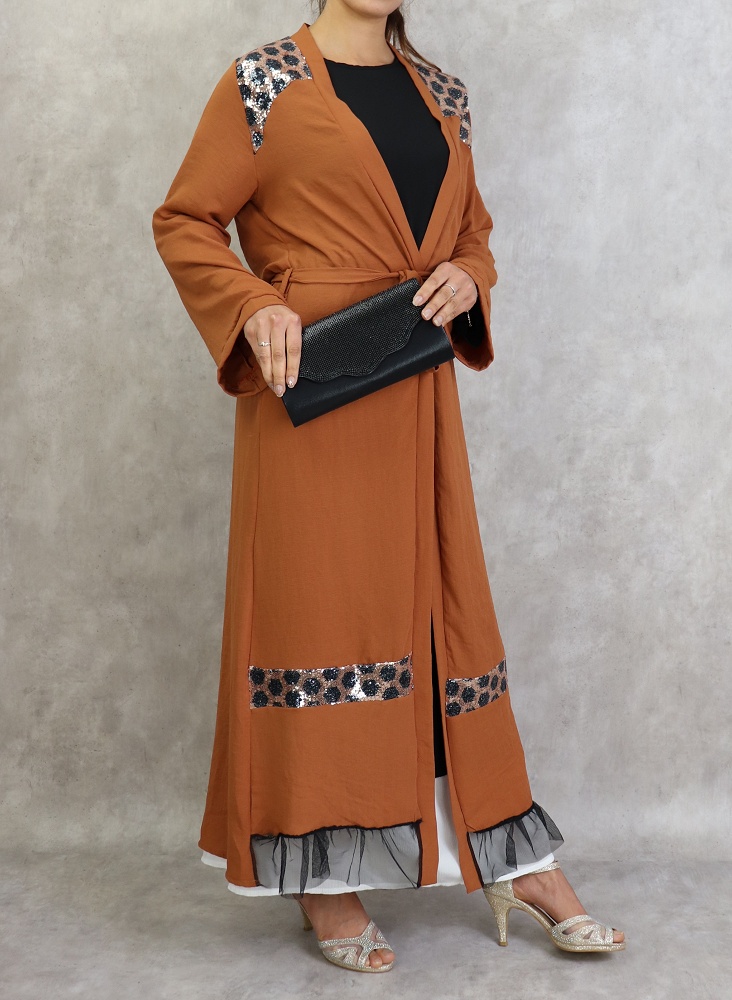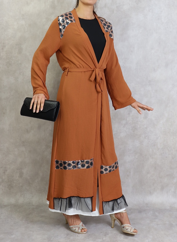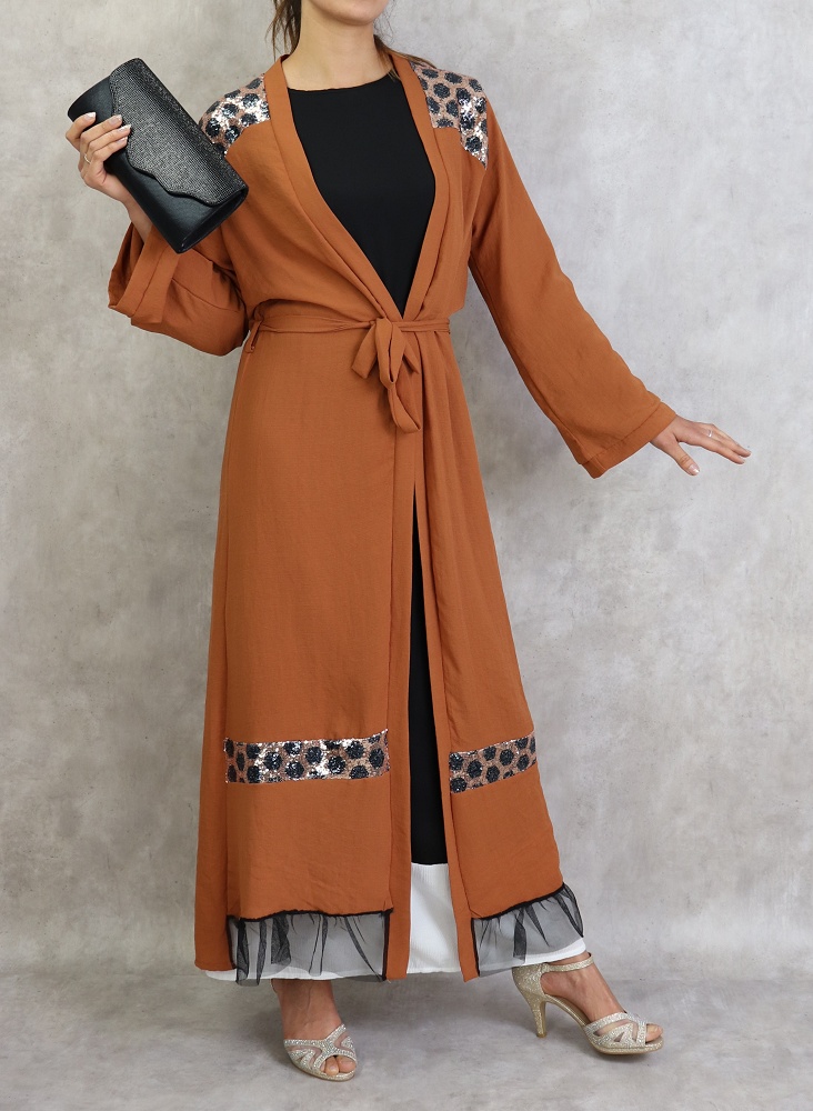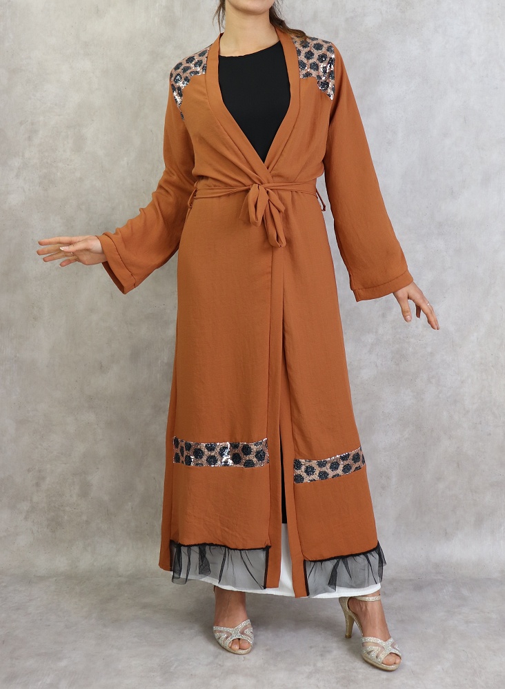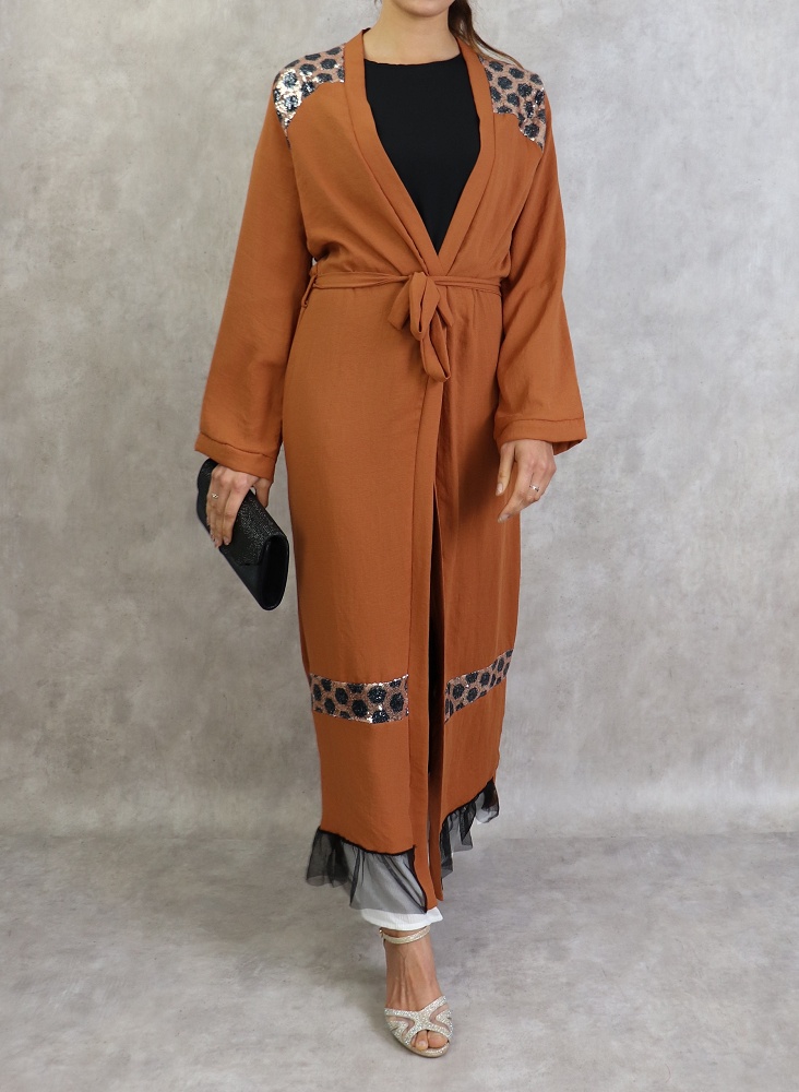 Kimono à strass et tulle de couleur rouille Vetement & Accessoire