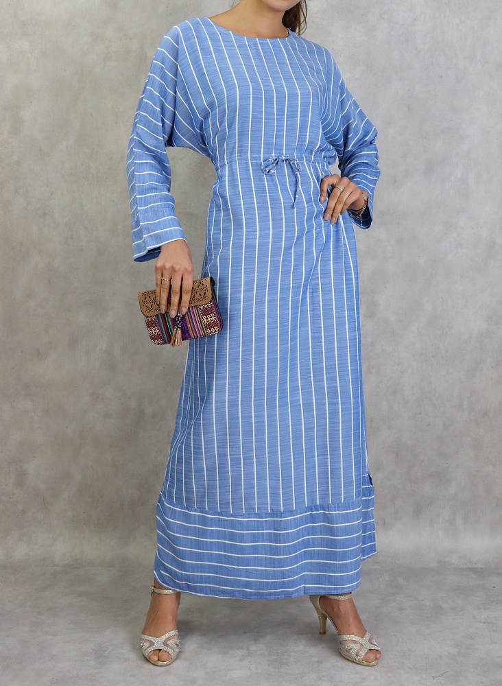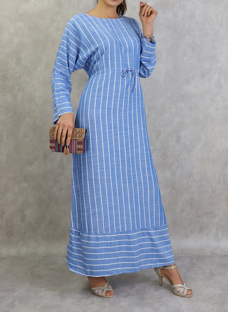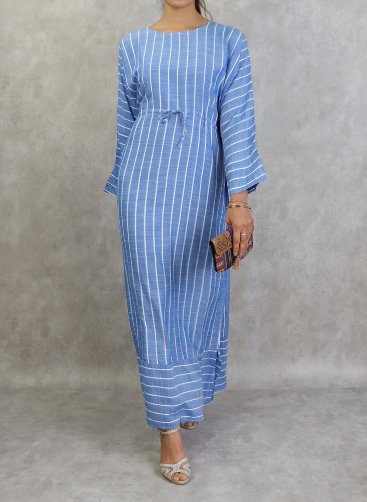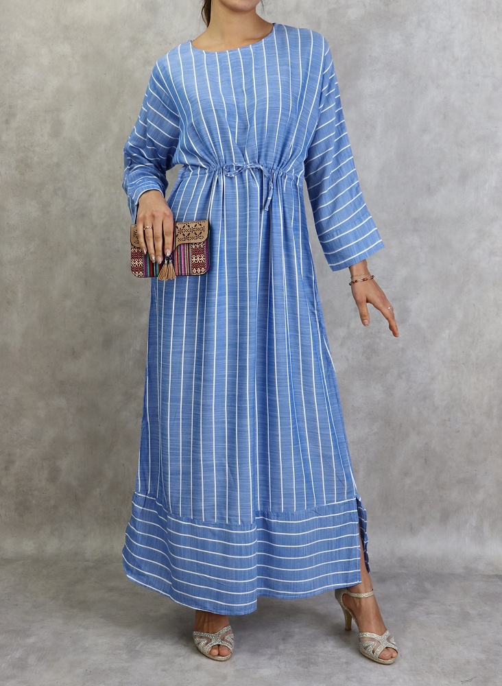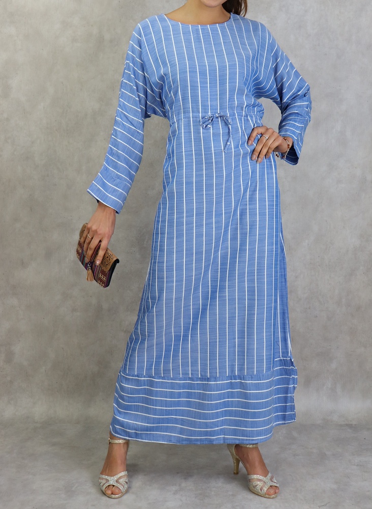 Robe longue en coton a rayures blanches - Couleur bleu
