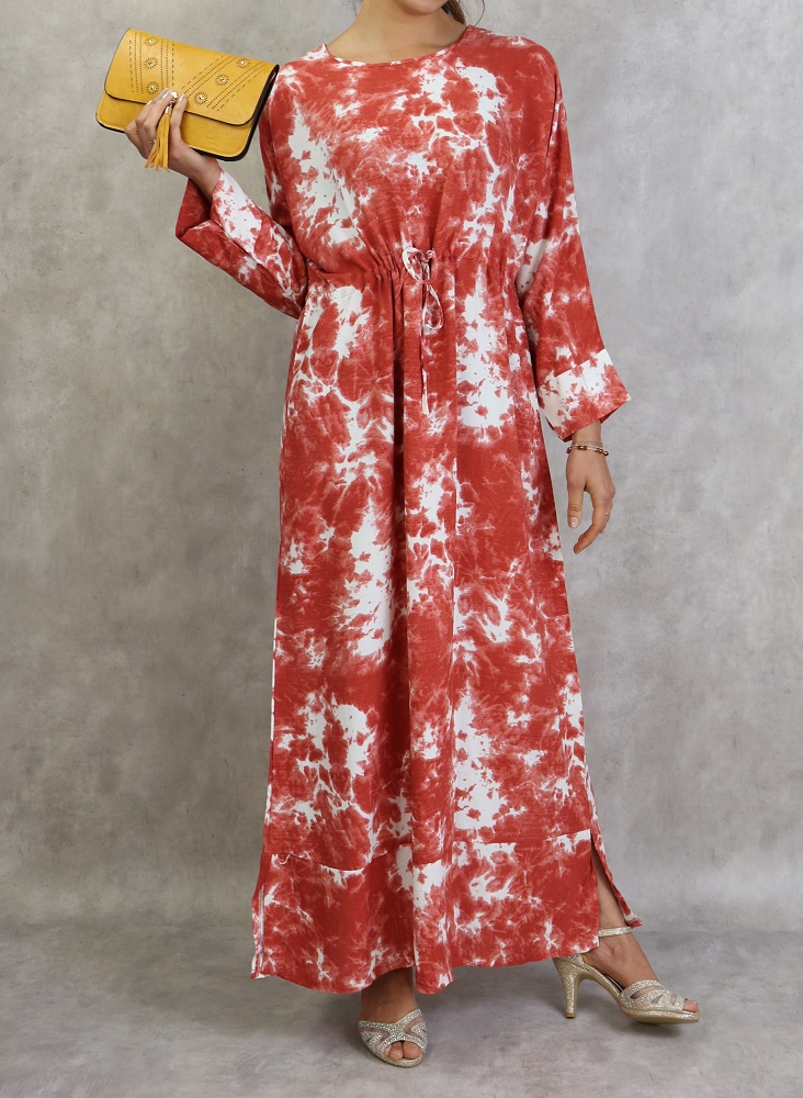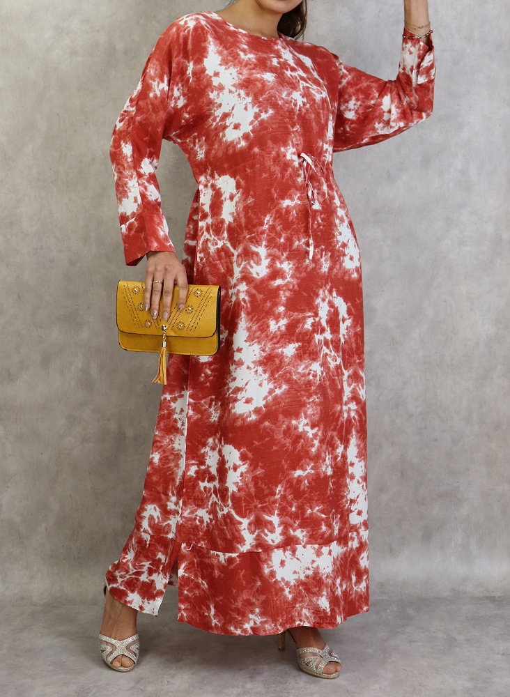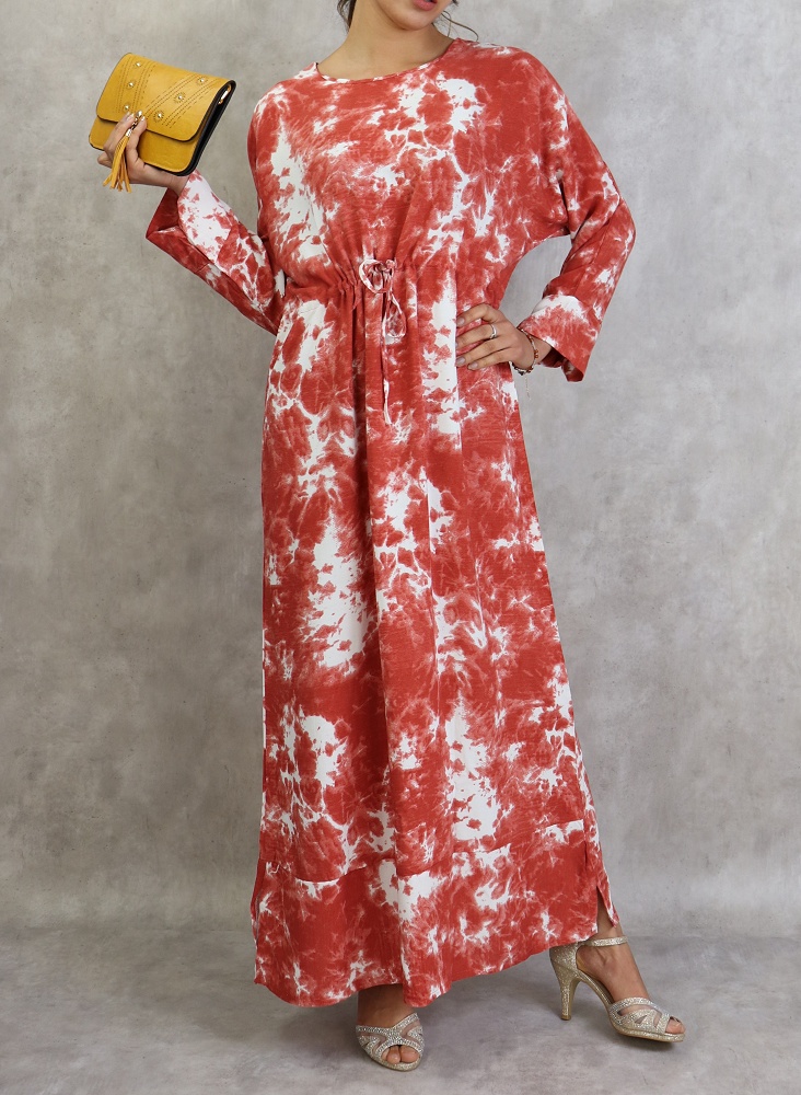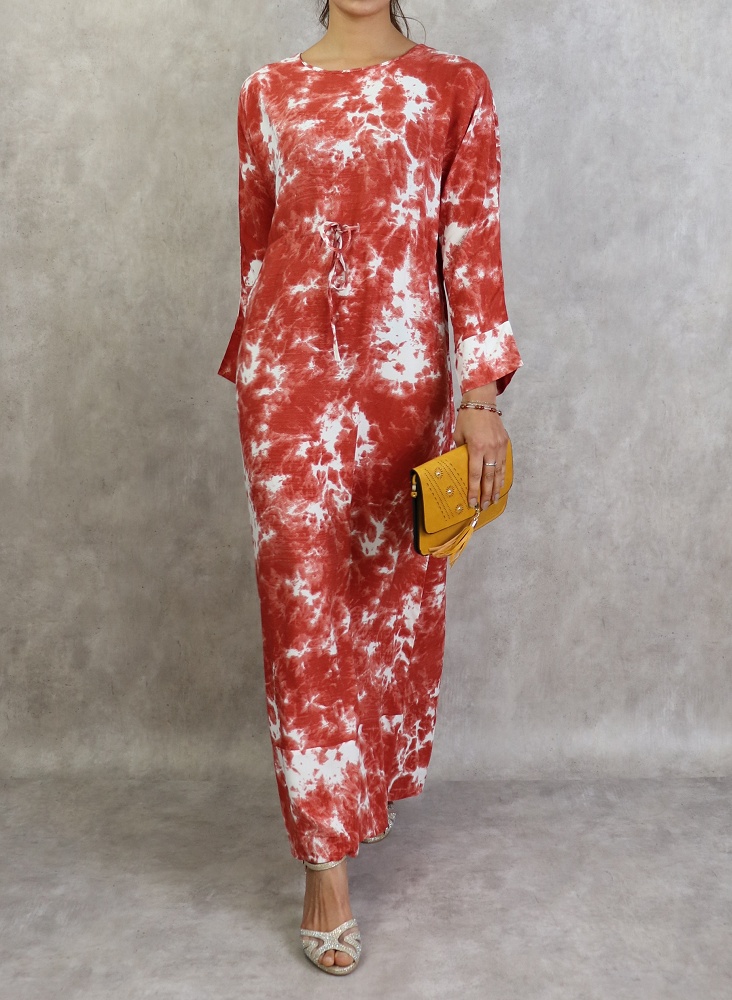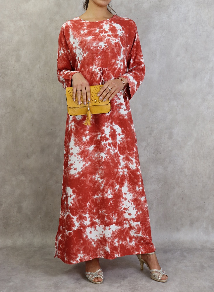 Robe longue en coton à imprimés délavés - Couleur rouge Vetement & Accessoire