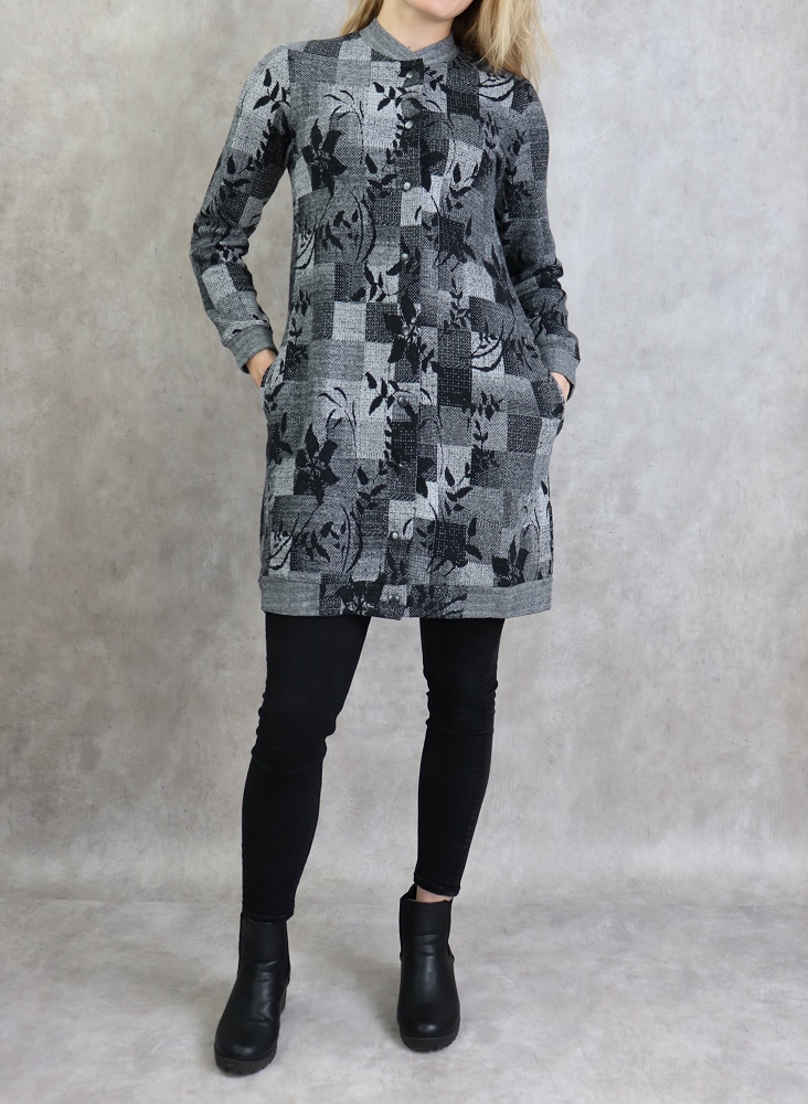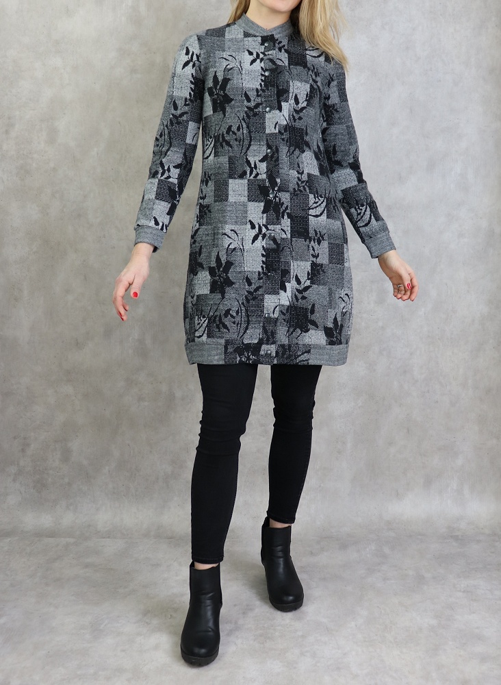 Tunique longue boutonnée à carreaux pour femme (Vetement Hijab Automne-Hiver) - Couleur gris - REF. 38294 (25.00 €)