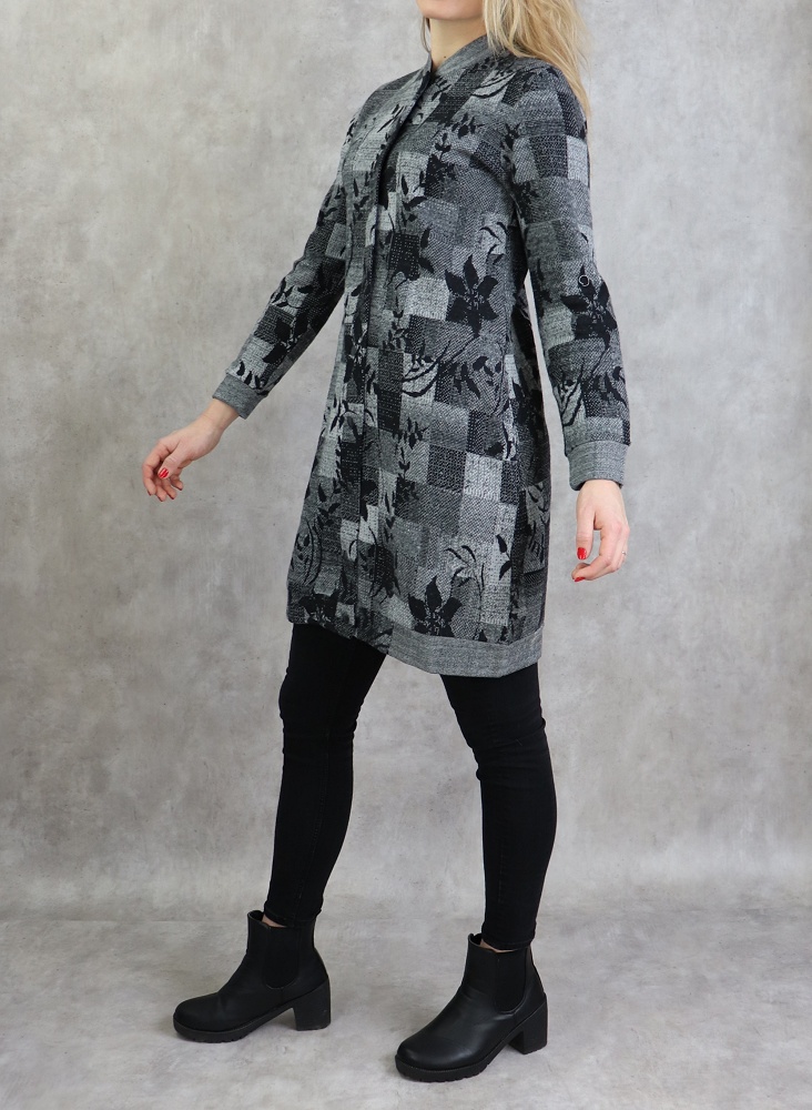 Gilet mi-long imprimé de couleur gris et noir Vetement & Accessoire