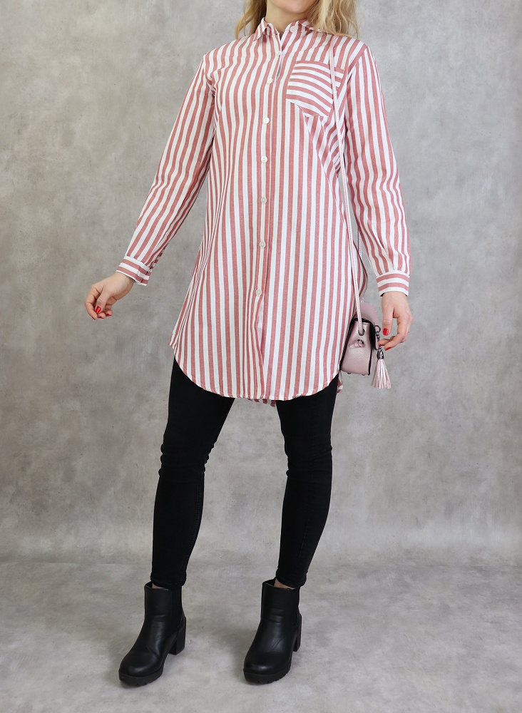 Chemise blanche à rayures de couleur Brique Vetement & Accessoire