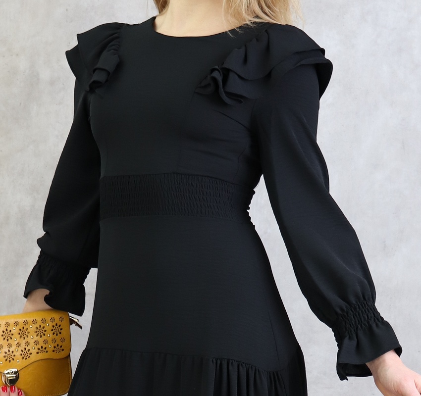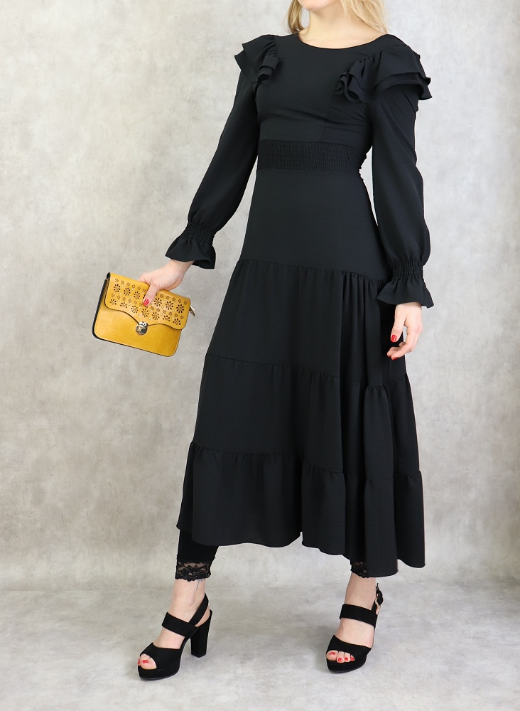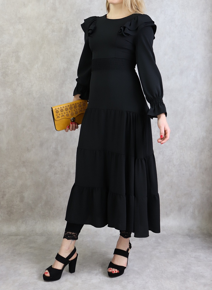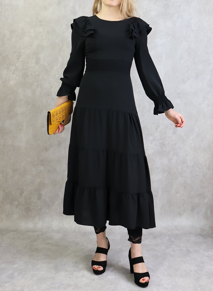 Robe à collerettes de couleur noir Vetement & Accessoire