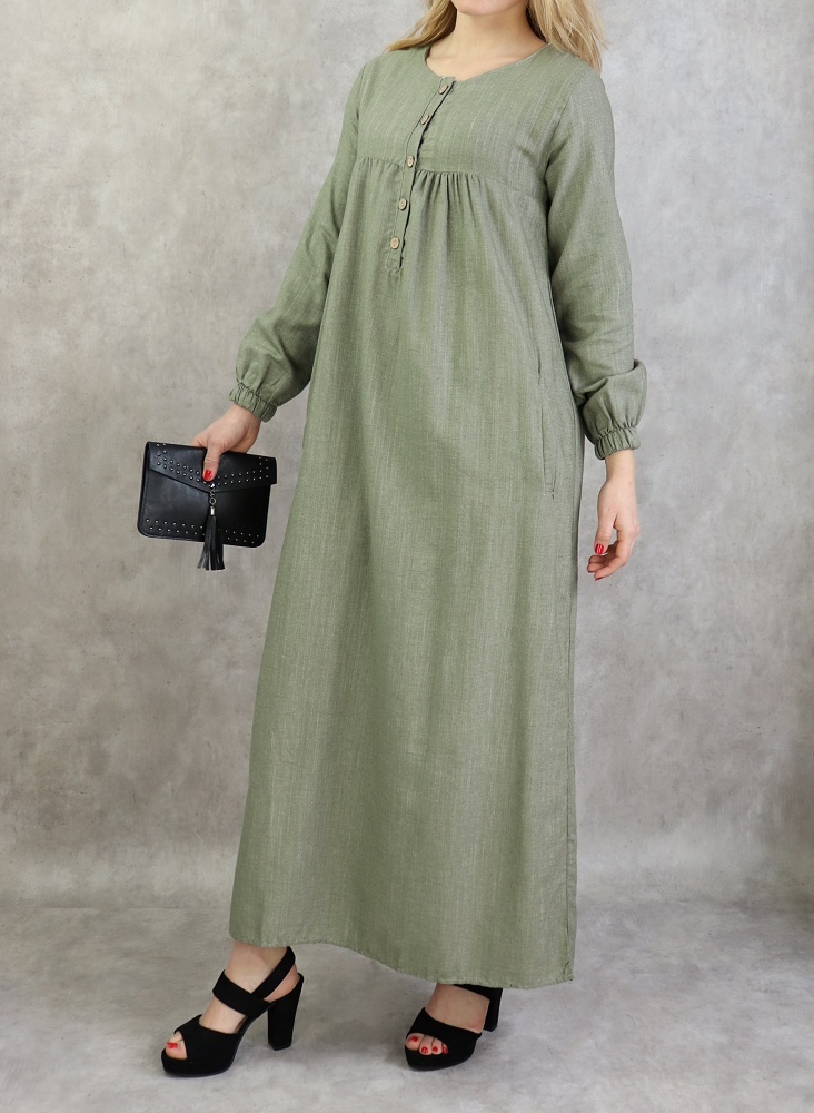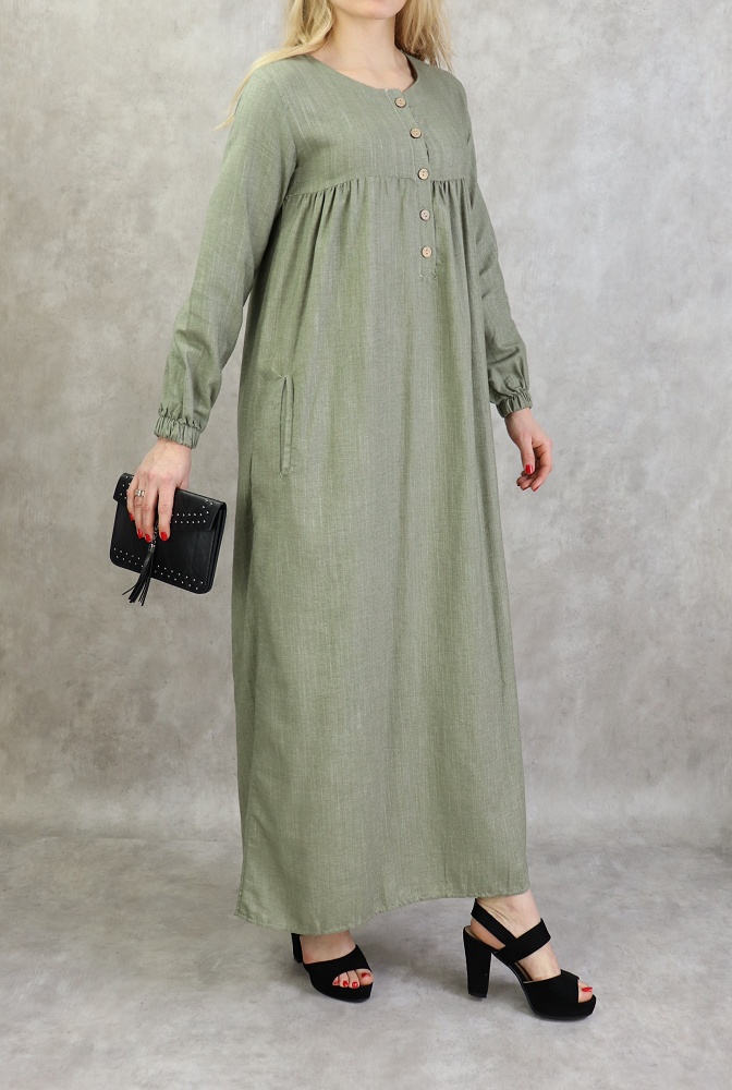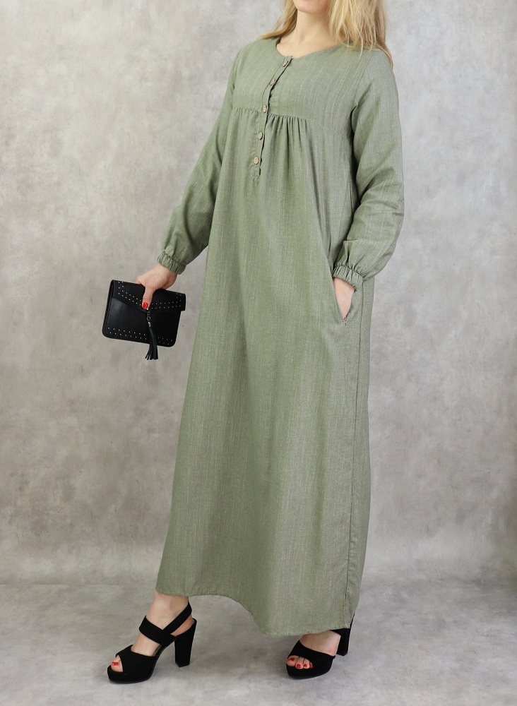 Robe longue effet tisse boutonnee avec poches pour femme - Couleur kaki