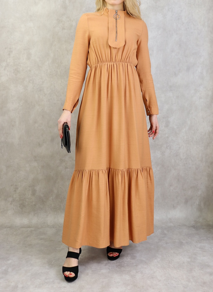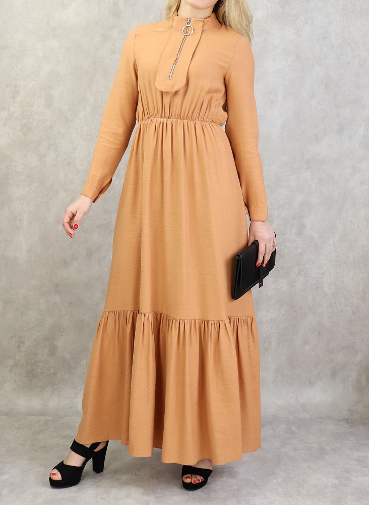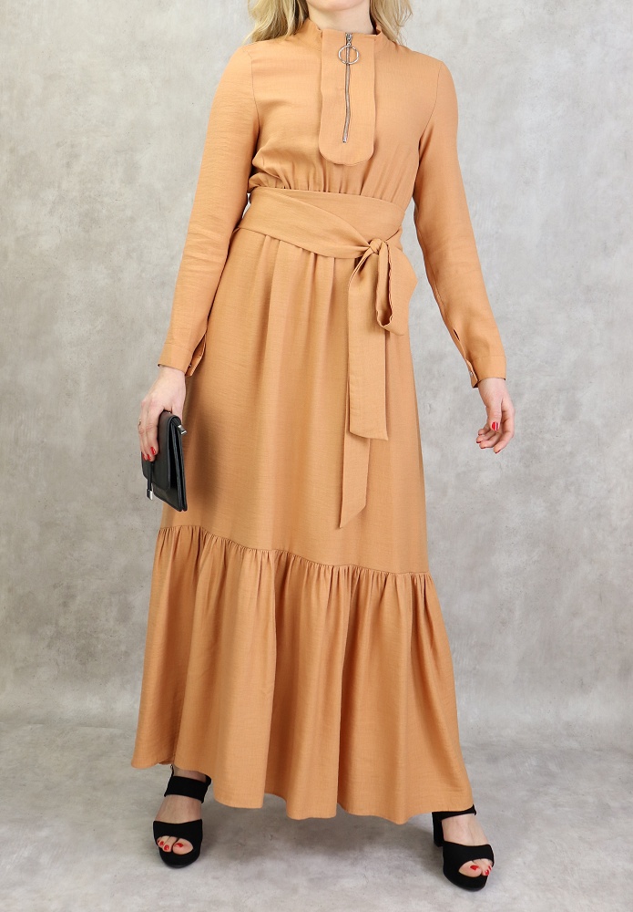 Robe longue casual boutonnée avec sa ceinture pour femme (Vetement hijab chic) - Couleur Beige - REF. 33927 (35.00 €)