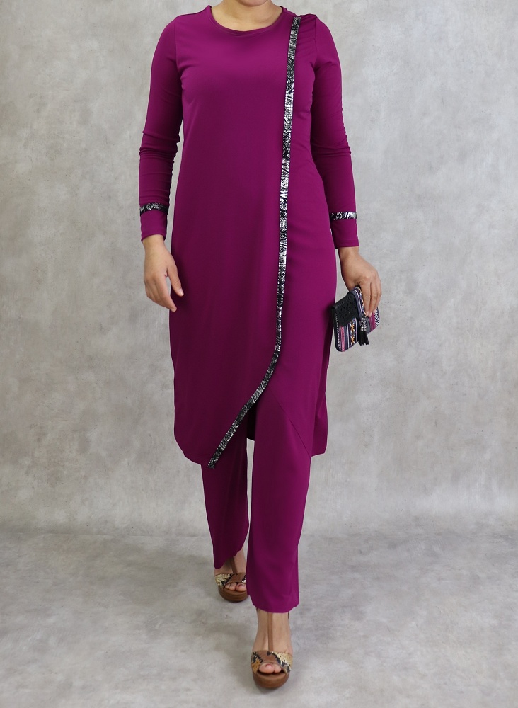 Ensemble chic pour femme - Tenue 2 pièces (tunique + pantalon) - Couleur violet - REF. 30598 (39.00 €)