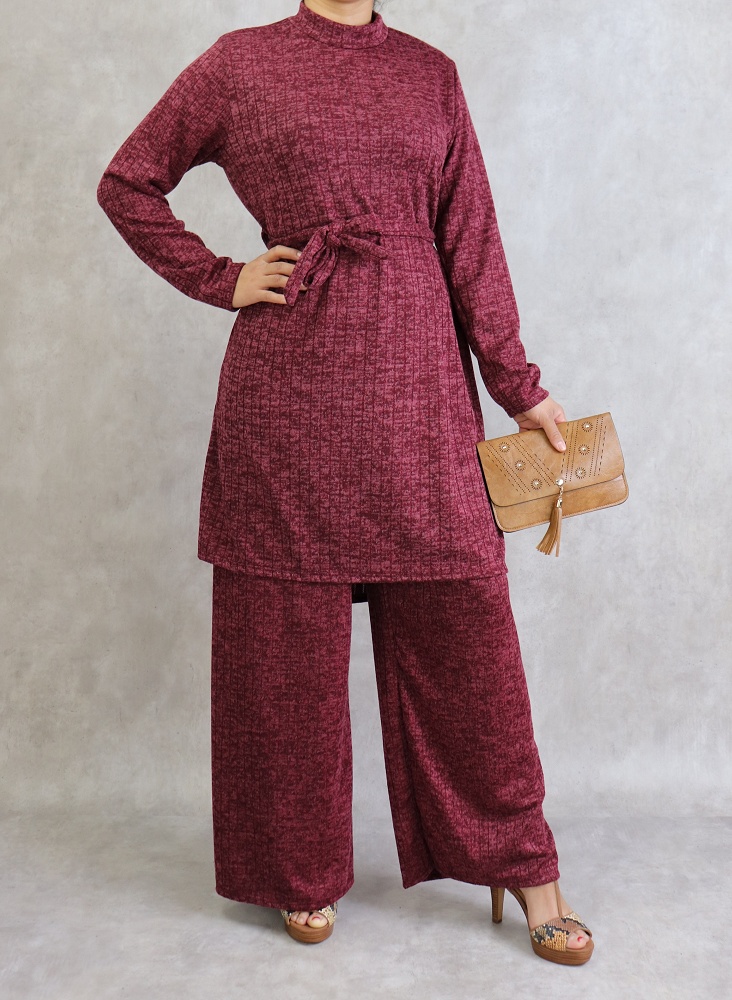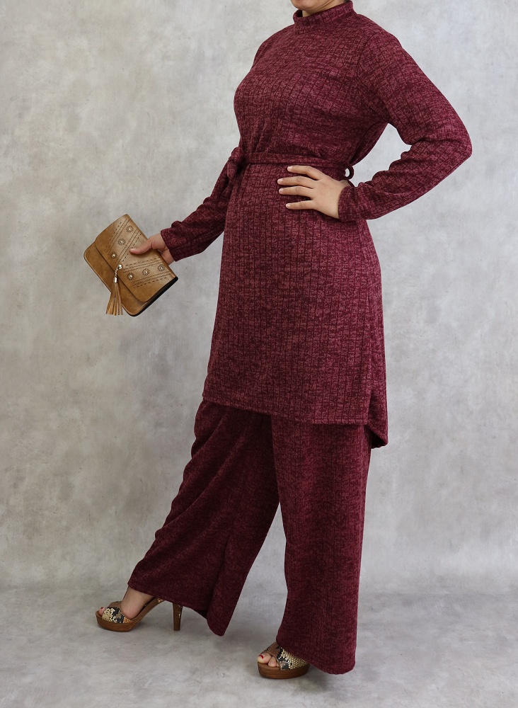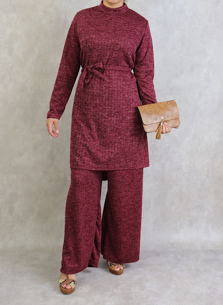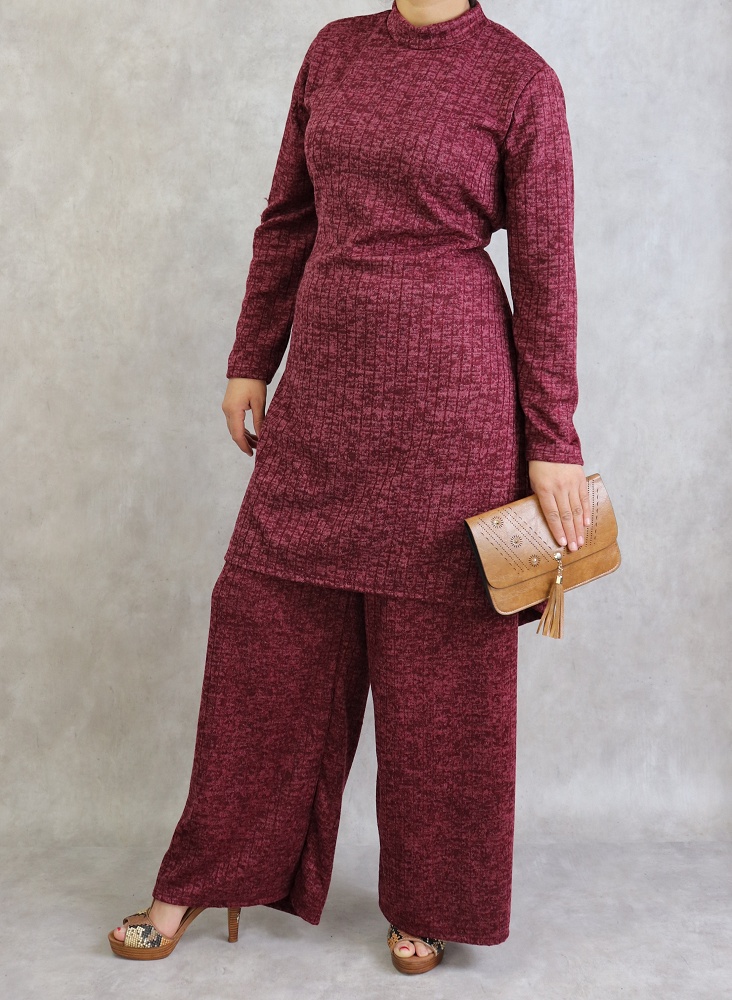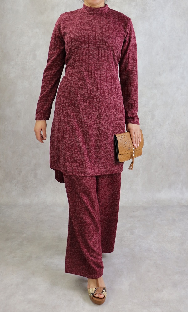 Ensemble tunique et pantalon chiné de couleur prune Vetement & Accessoire