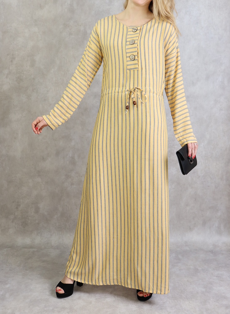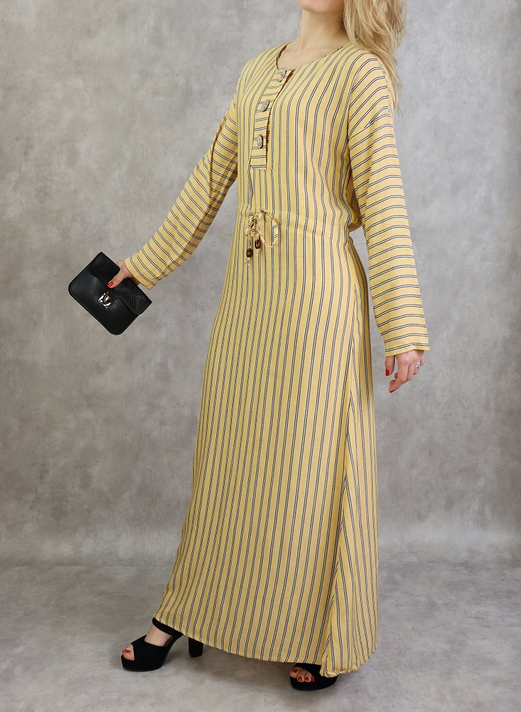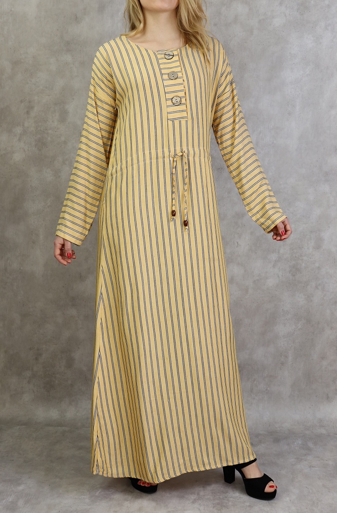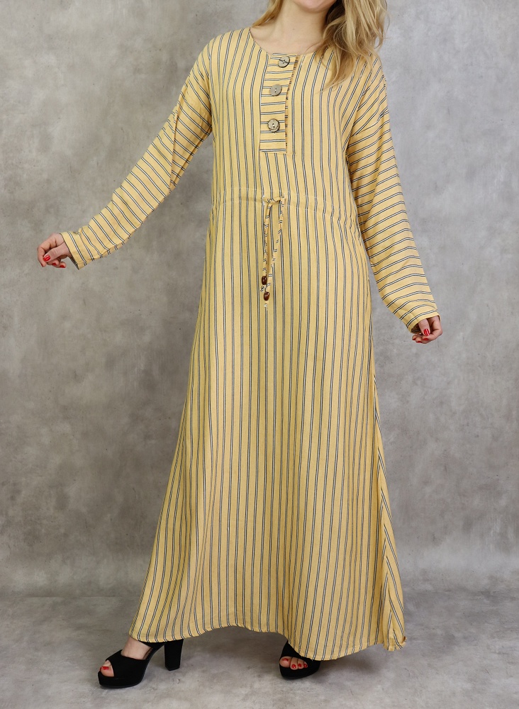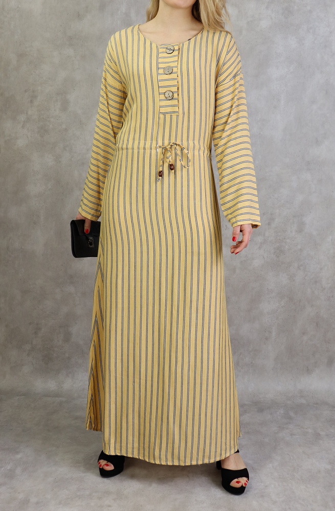 Robe longue à rayures style décontracté pour femme - Couleur jaune moutarde - REF. 30326 (24.90 €) - En Promotion à 19.00 €