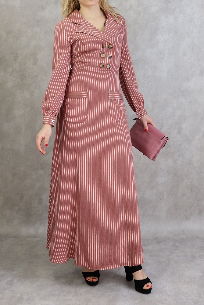 Robe à rayures à haut boutonné couleur Cuivre clair - REF. 31248 (19.90 €)