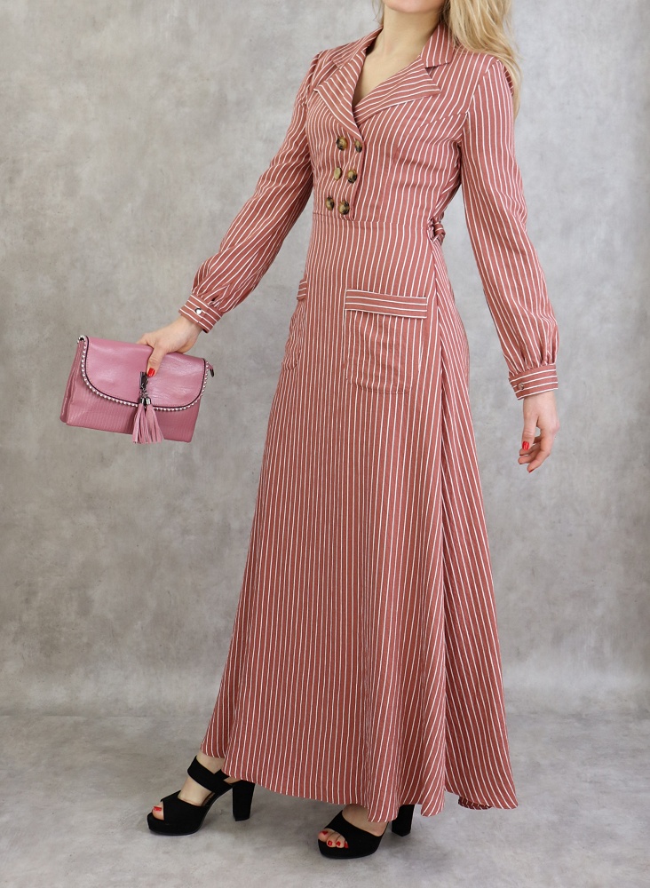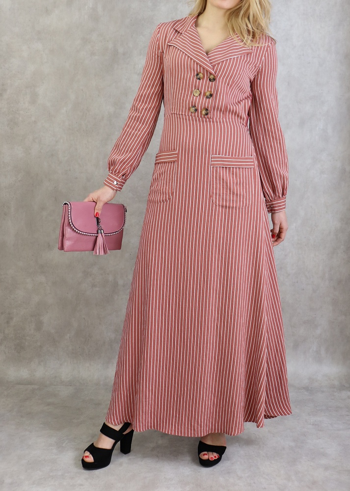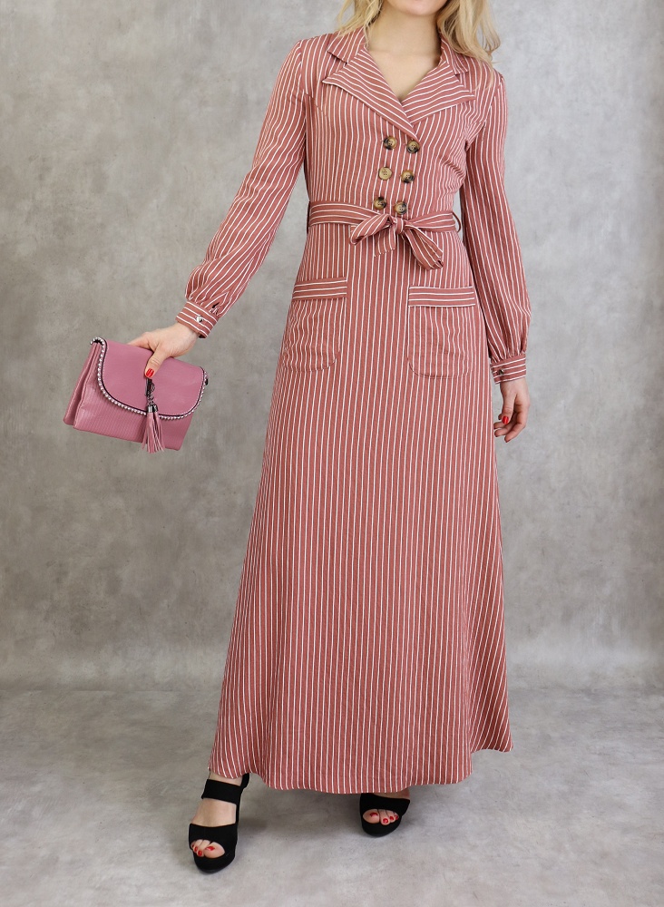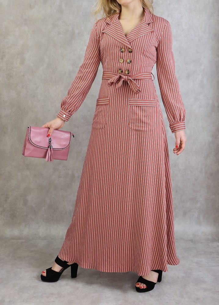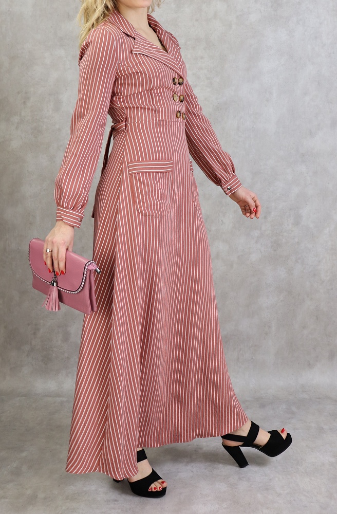 Robe longue à rayures avec ceinture pour femme voilée - Couleur rose poudré - REF. 33207 (29.90 €) - En Promotion à 24.90 €