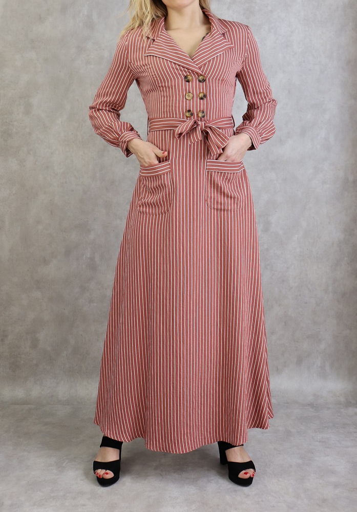 Robe longue à rayure de couleur rouille Vetement & Accessoire