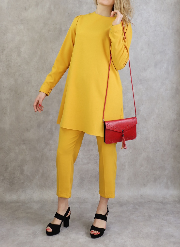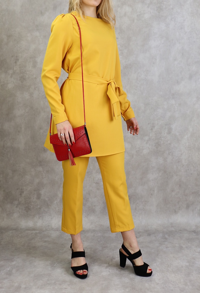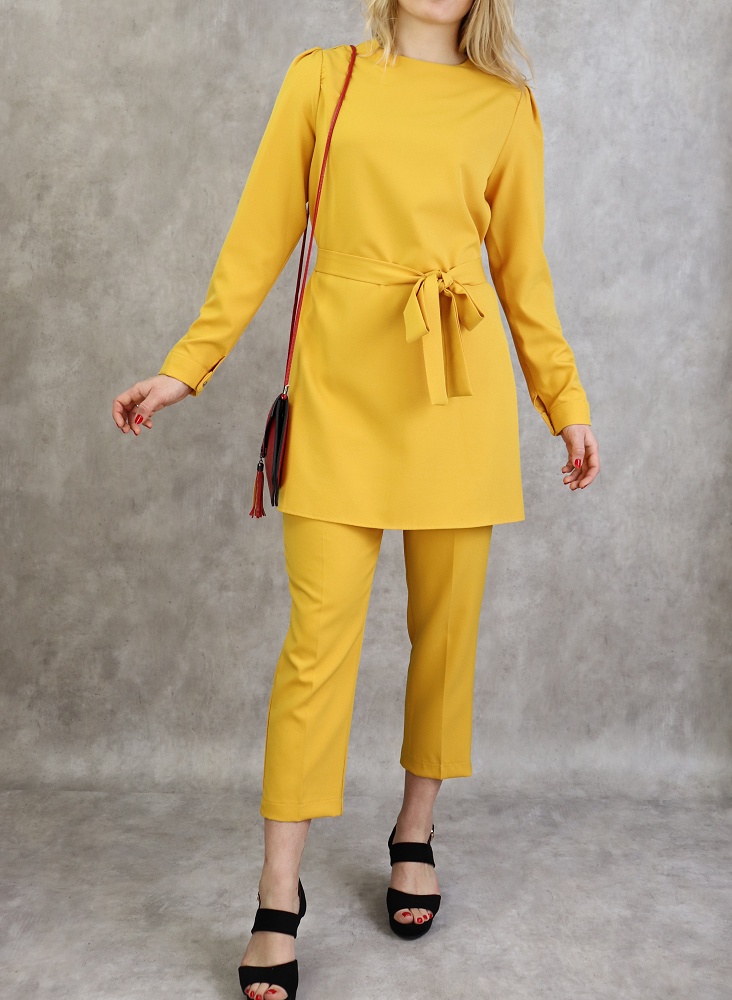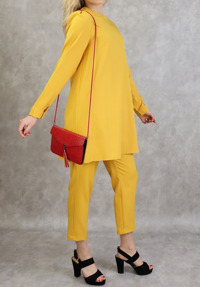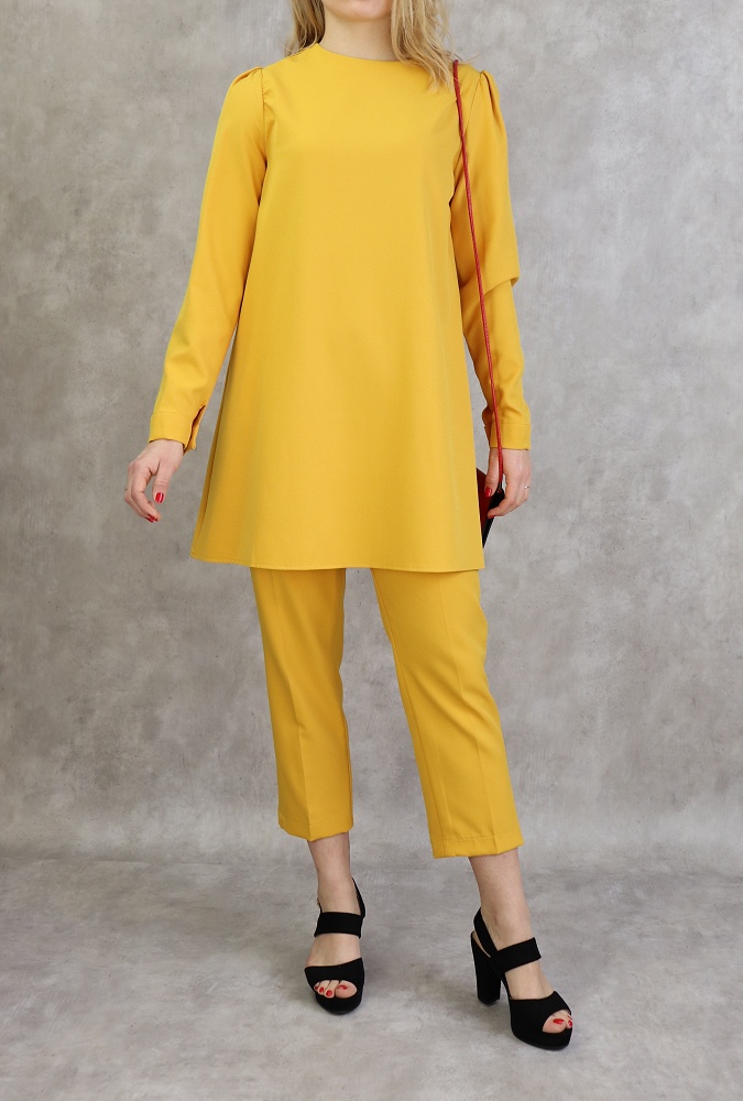 Ensemble chic 2 pièces tunique et pantalon de couleur jaune moutarde Vetement & Accessoire