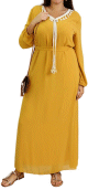 Robe maxi-longue fluide avec cordons à pompons pour femme - Couleur Jaune Moutarde - REF. 30794 (29.90 €) - En Promotion à 24.90 €