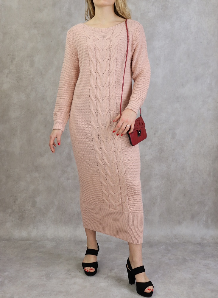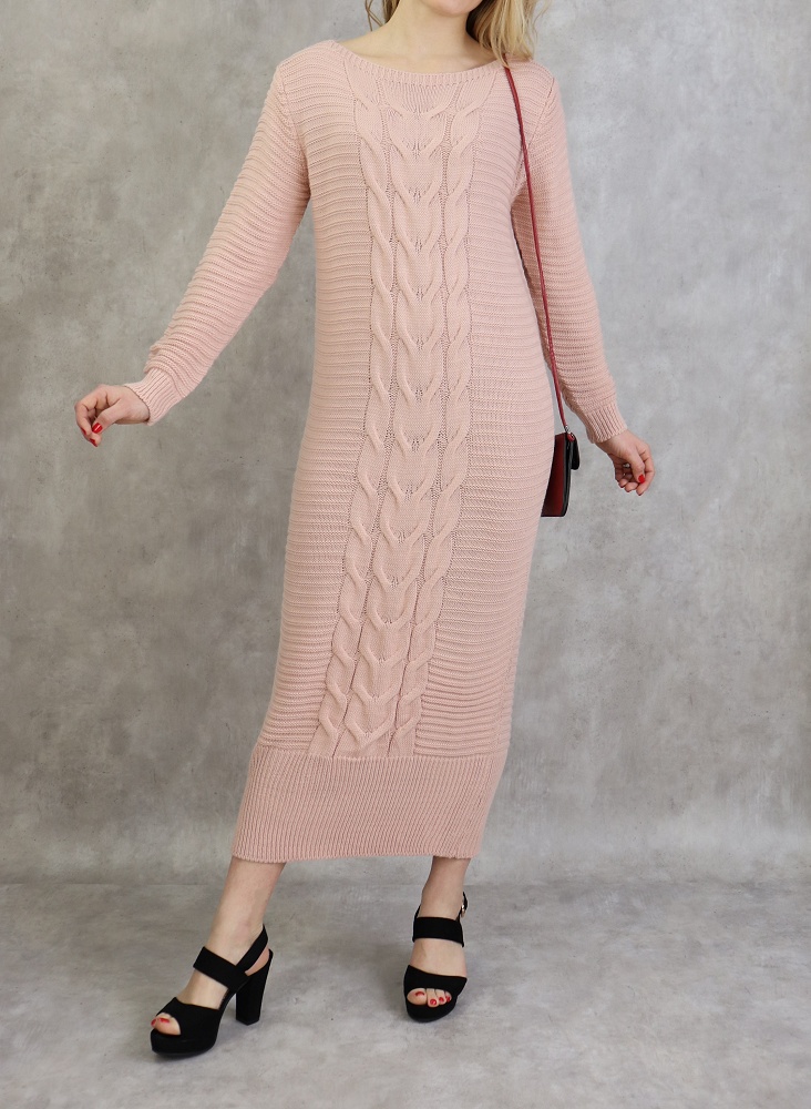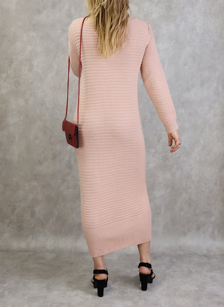 Robe longue a maille de couleur vieux rose