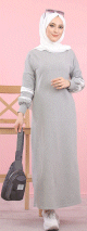 Robe longue look décontracté pour femme musulmane (Vetement hidjab pas cher) - Couleur gris clair - REF. 32528 (19.90 €) - En Promotion à 16.90 €