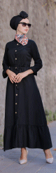 Robe longue de ville avec boutons sur l'avant et ceinture - Couleur noire (Vêtement classe pour femme chic) - REF. 30387 (29.90 €)