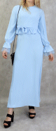 Robe longue casual fluide évasée à volants pour femme - Couleur bleu ciel - REF. 31217 (32.00 €)