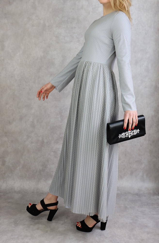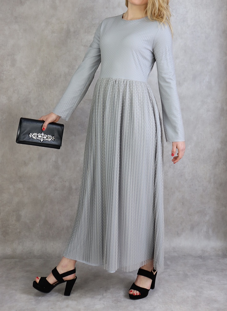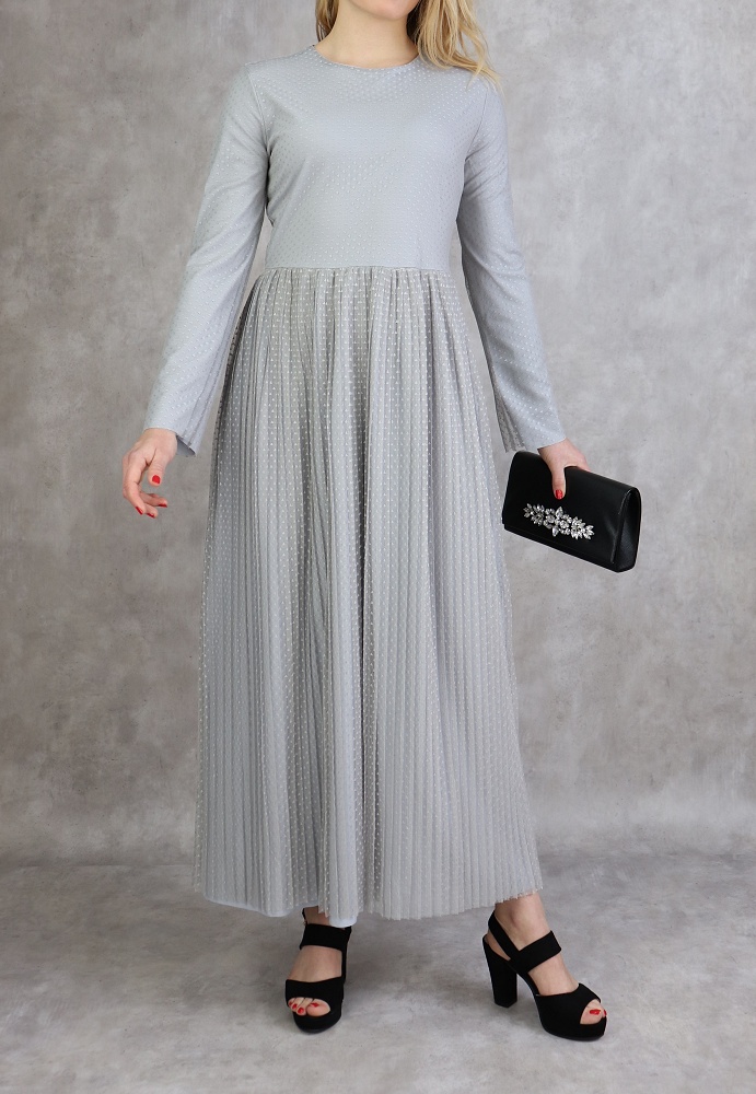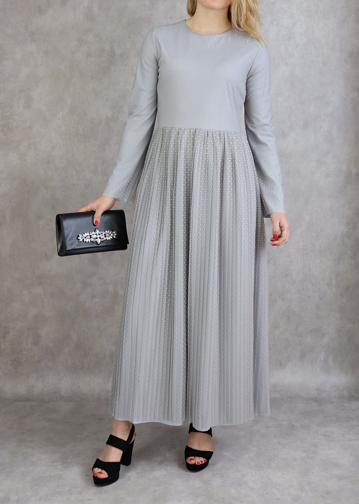 Robe de soirée longue plissée en tulle pour femme - Couleur gris clair Vetement & Accessoire