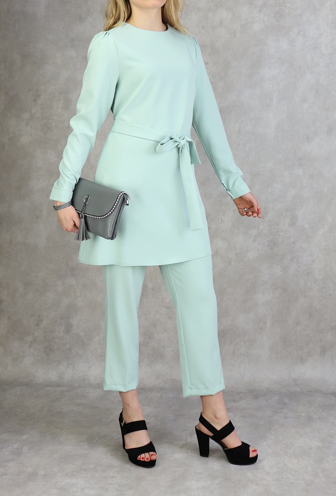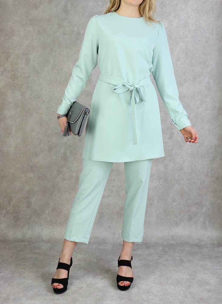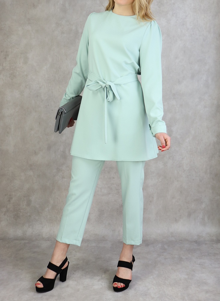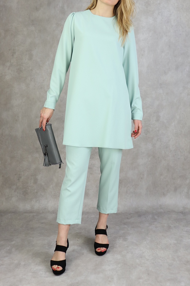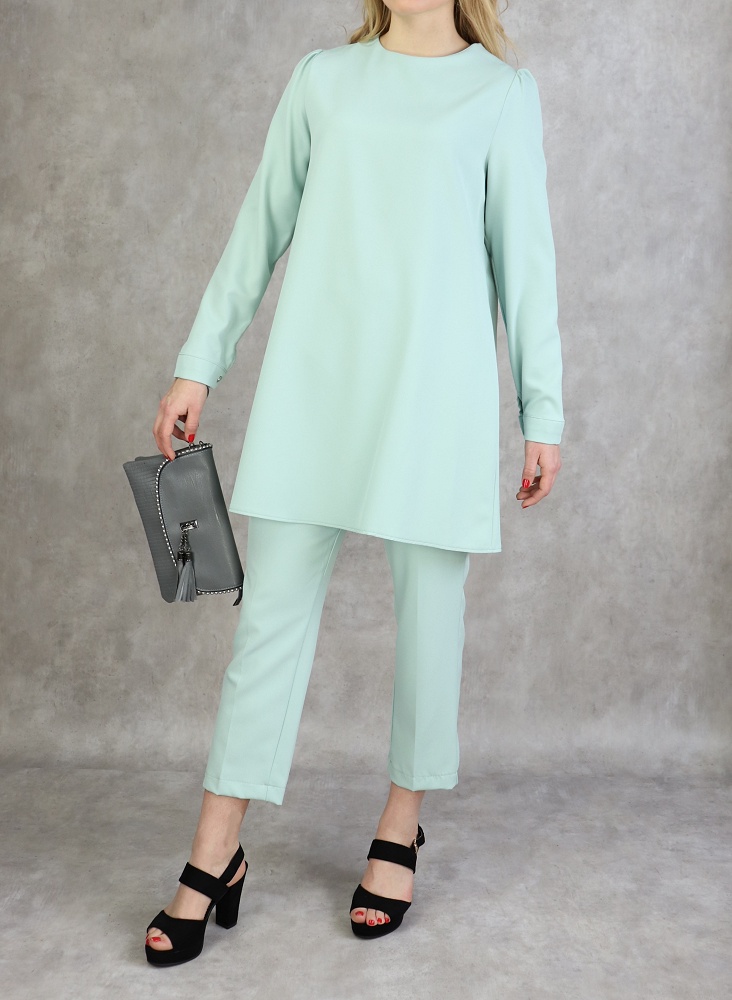 Ensemble femme deux pièces : Tunique évasée et Pantalon assorti (Tenue habillée pour hijab) - Couleur menthe - REF. 36202 (38.00 €)