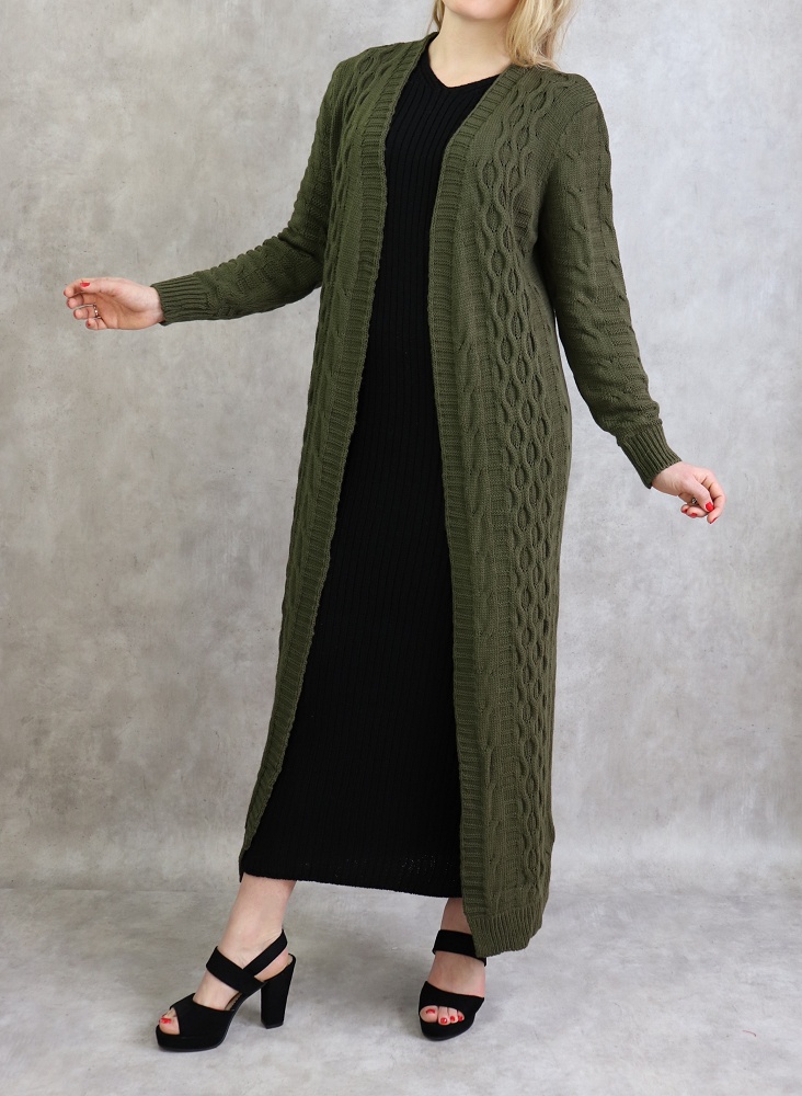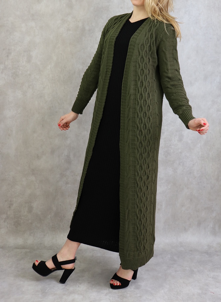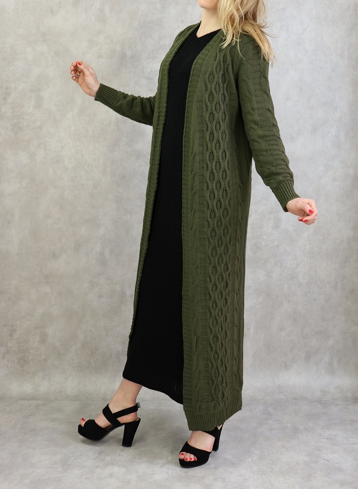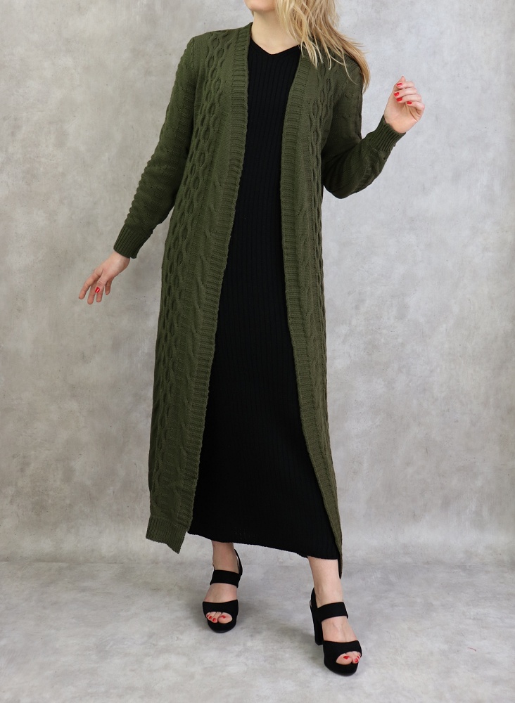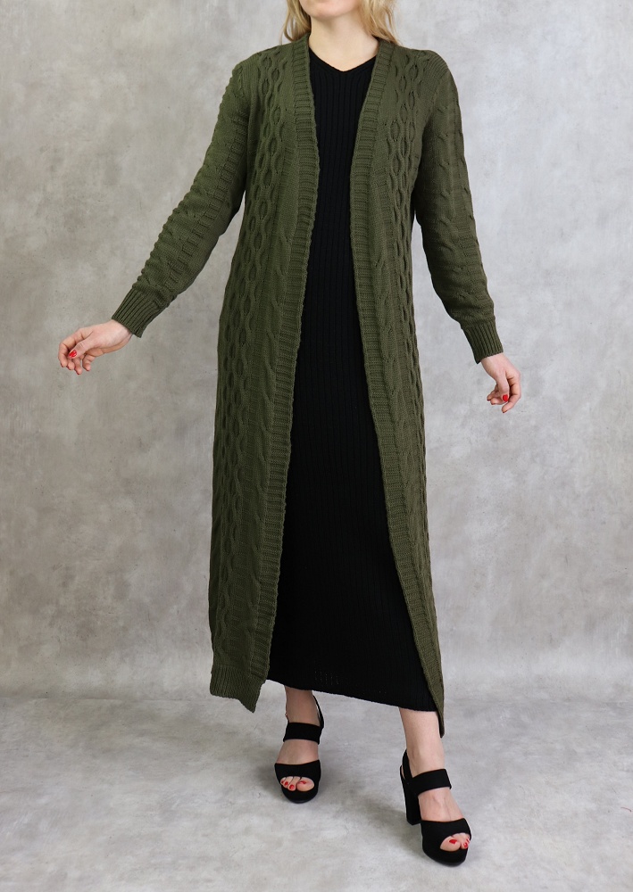 Gilet long à maille de couleur vert kaki Vetement & Accessoire