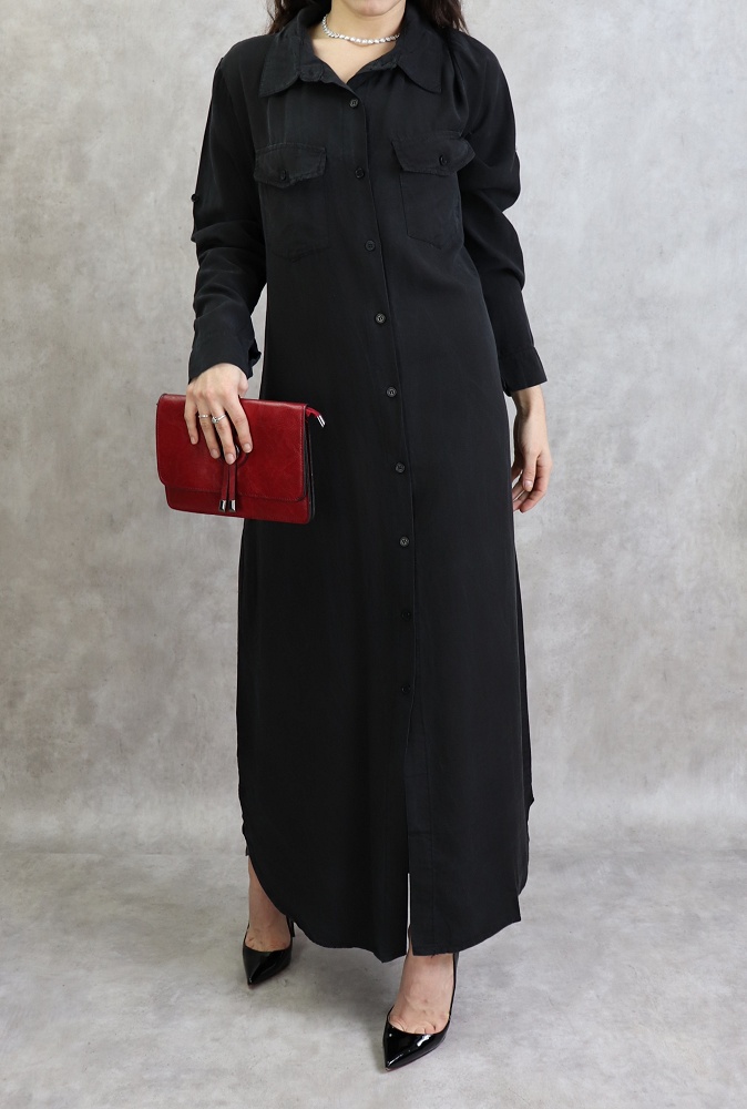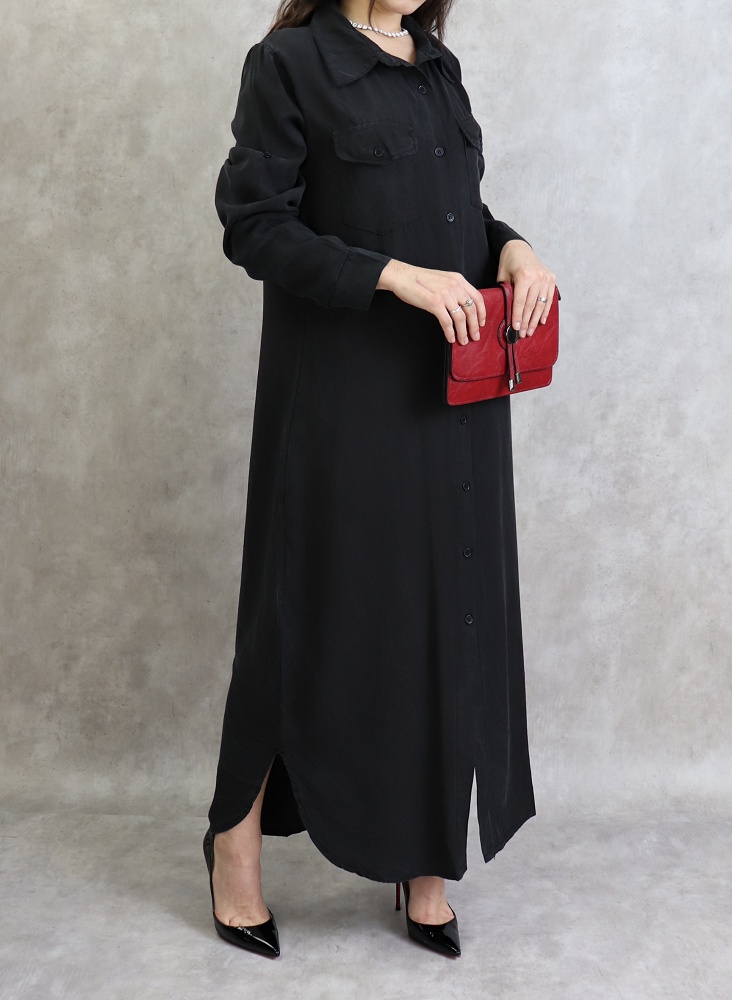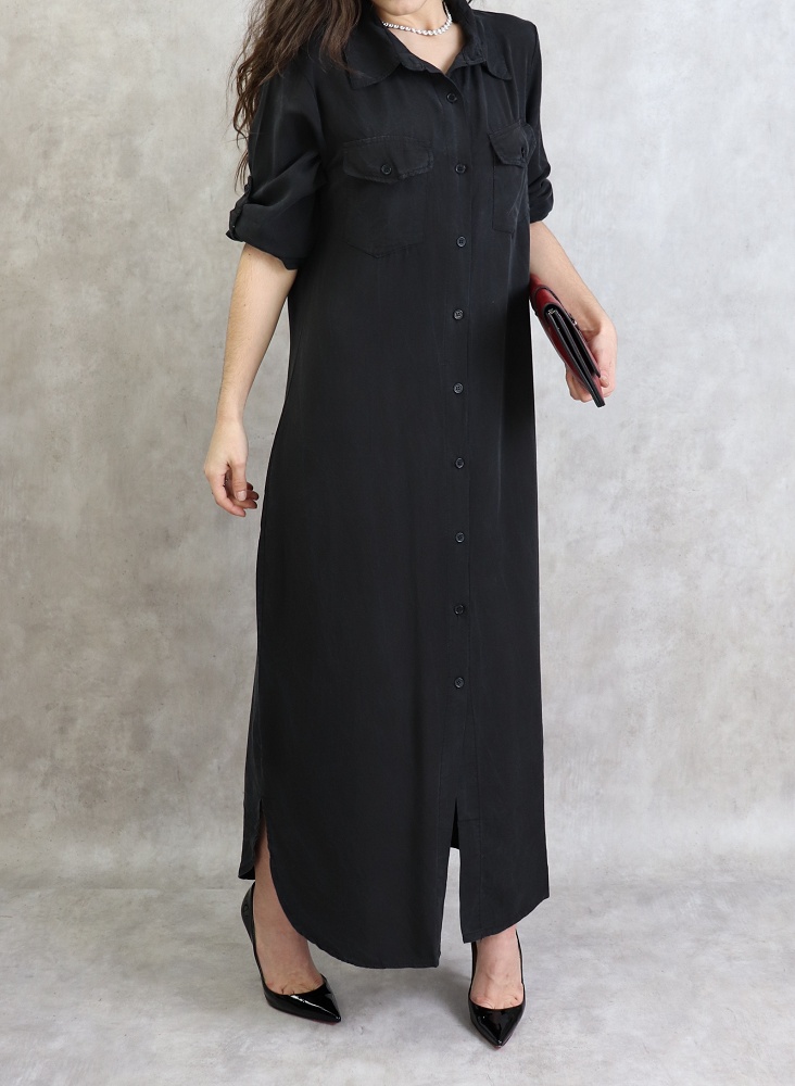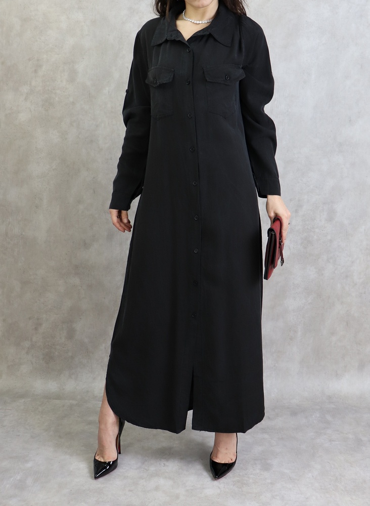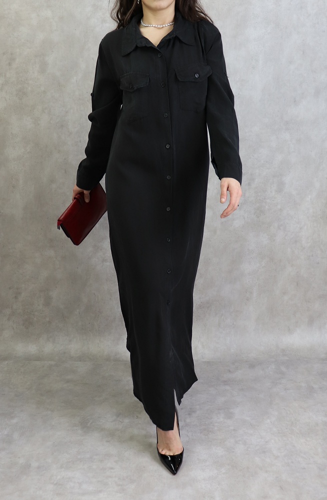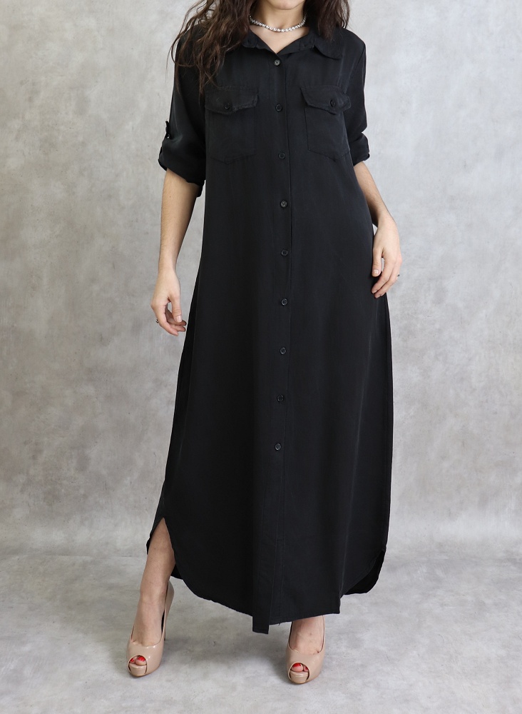 Robe chemise longue de couleur noire Vetement & Accessoire