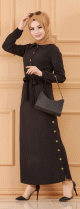 Robe longue chic avec ceinture (Vêtement style habillé pour femme voilée) - Couleur noir - REF. 36620 (32.00 €)