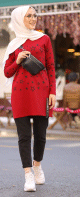 Tunique imprimée avec motif étoile (Star Modeste Fashion pour femme voilée) - Couleur rouge - REF. 37054 (18.00 €) - En Promotion à 14.90 €