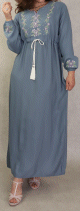 Robe longue brodée avec un lien à la taille pour femme - Couleur Gris - REF. 37038 (24.90 €)