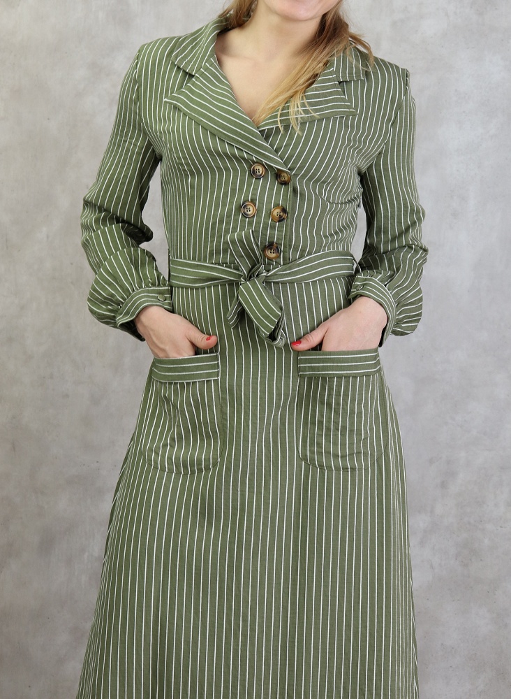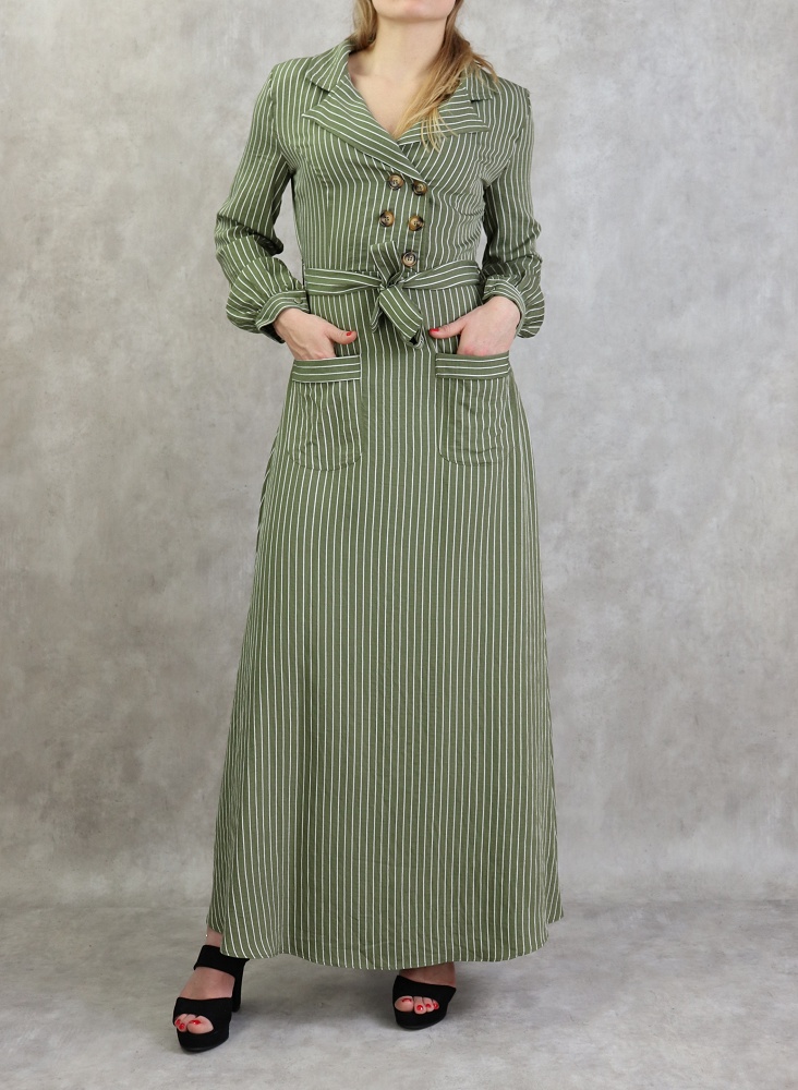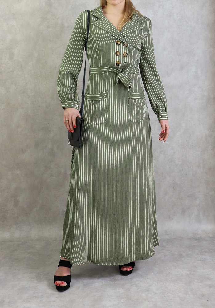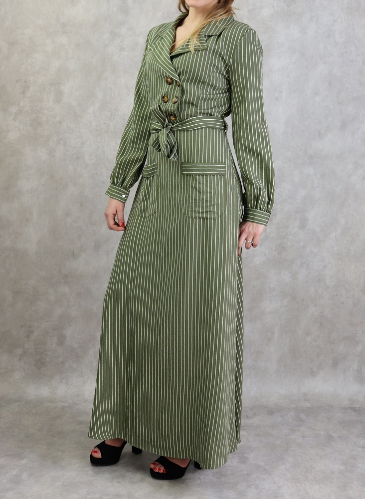 Robe longue à rayure de couleur kaki Vetement & Accessoire