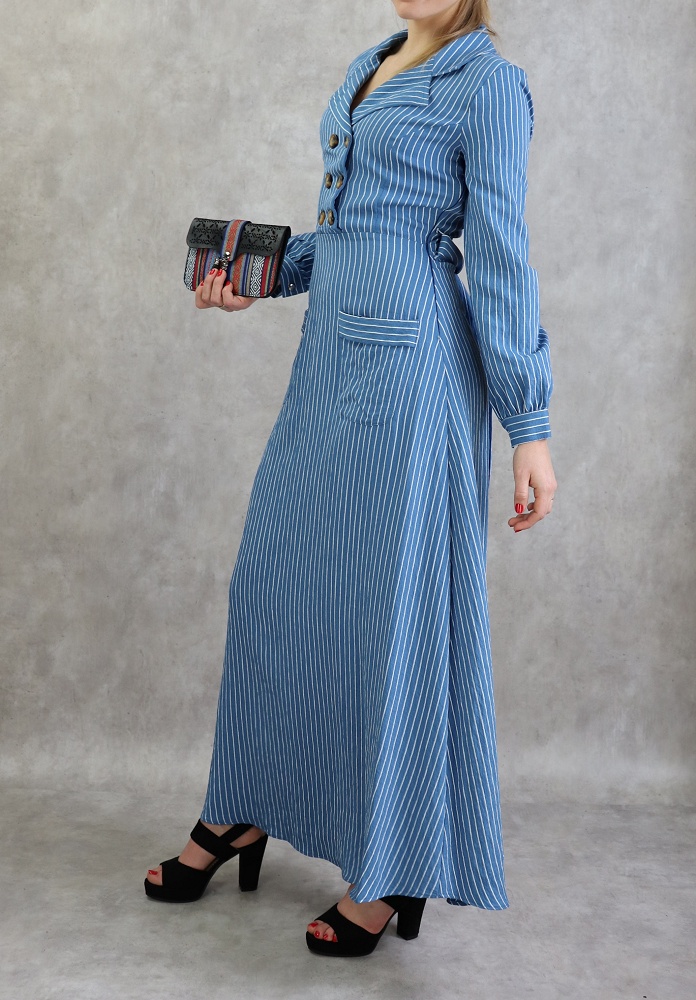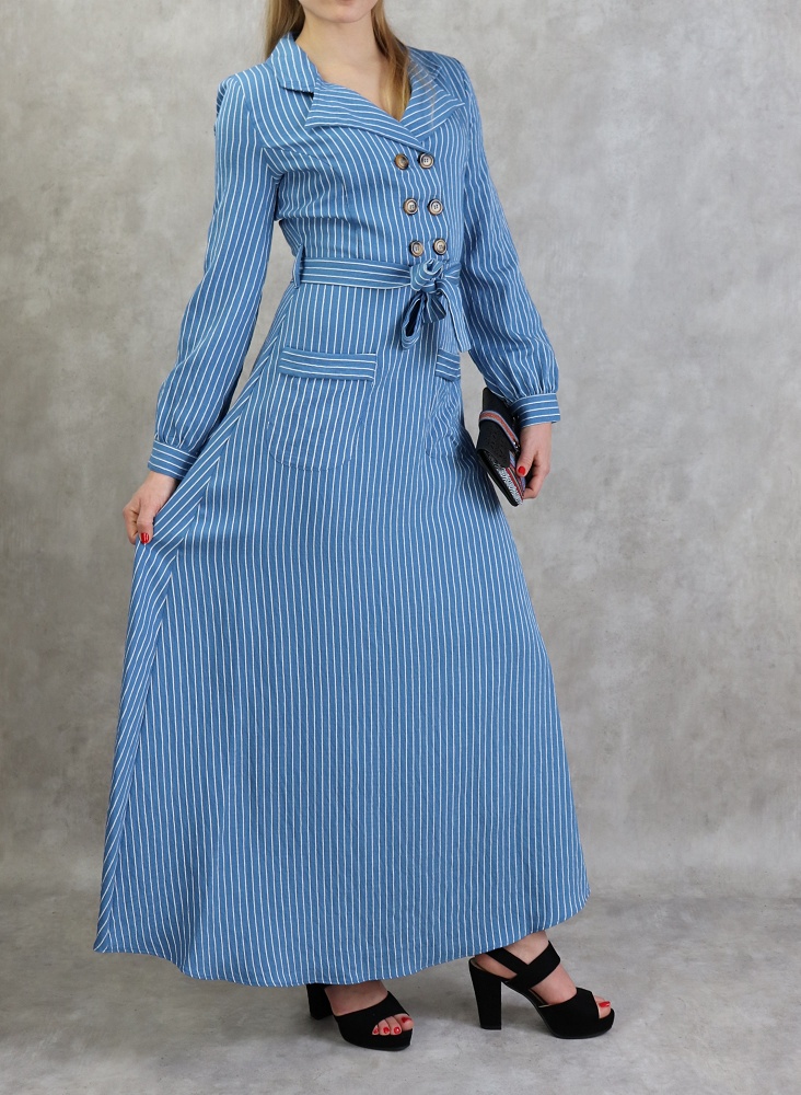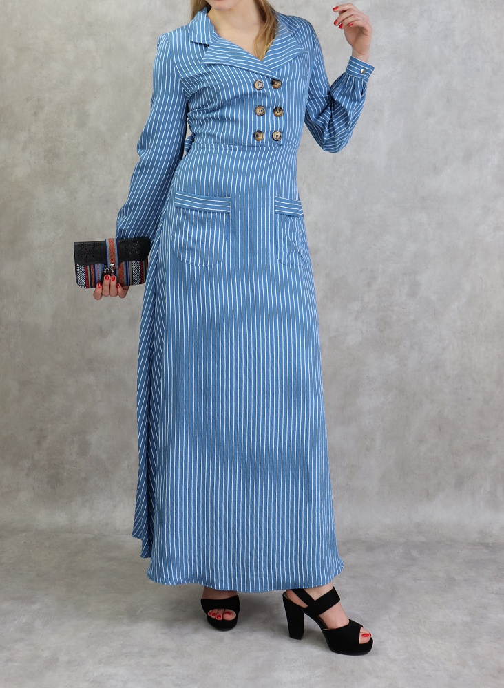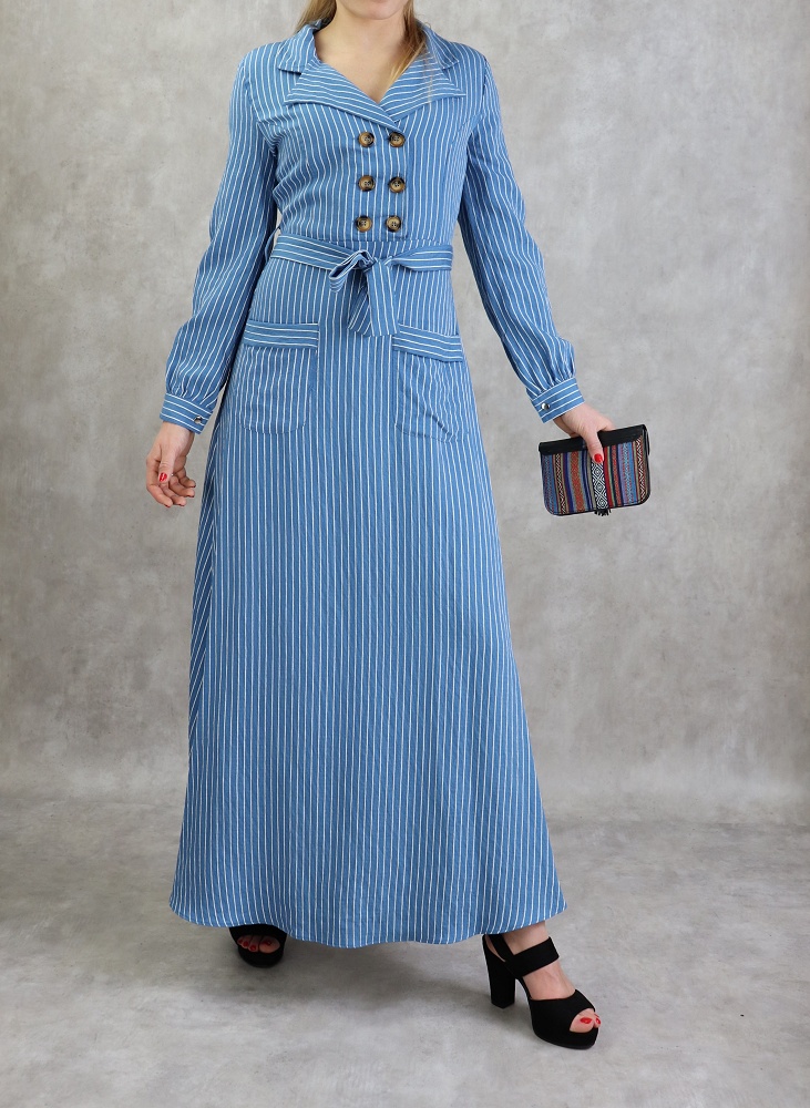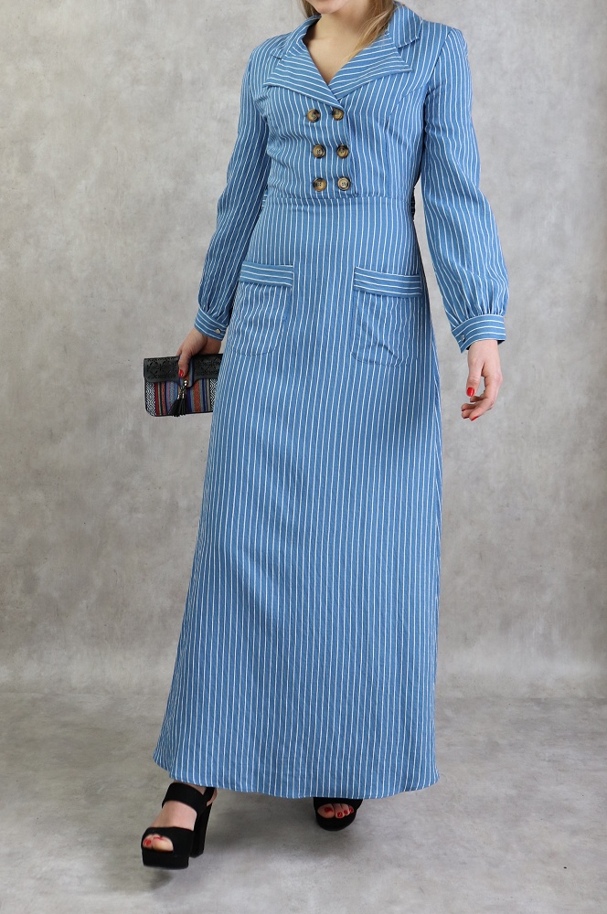 Robe longue à rayure de couleur bleu Vetement & Accessoire