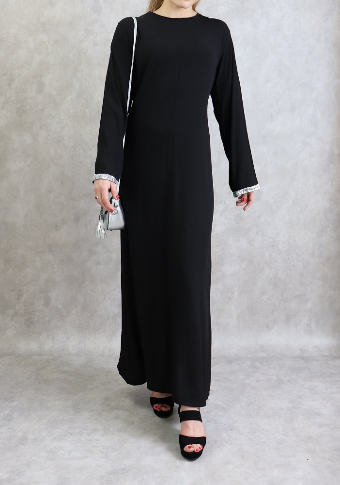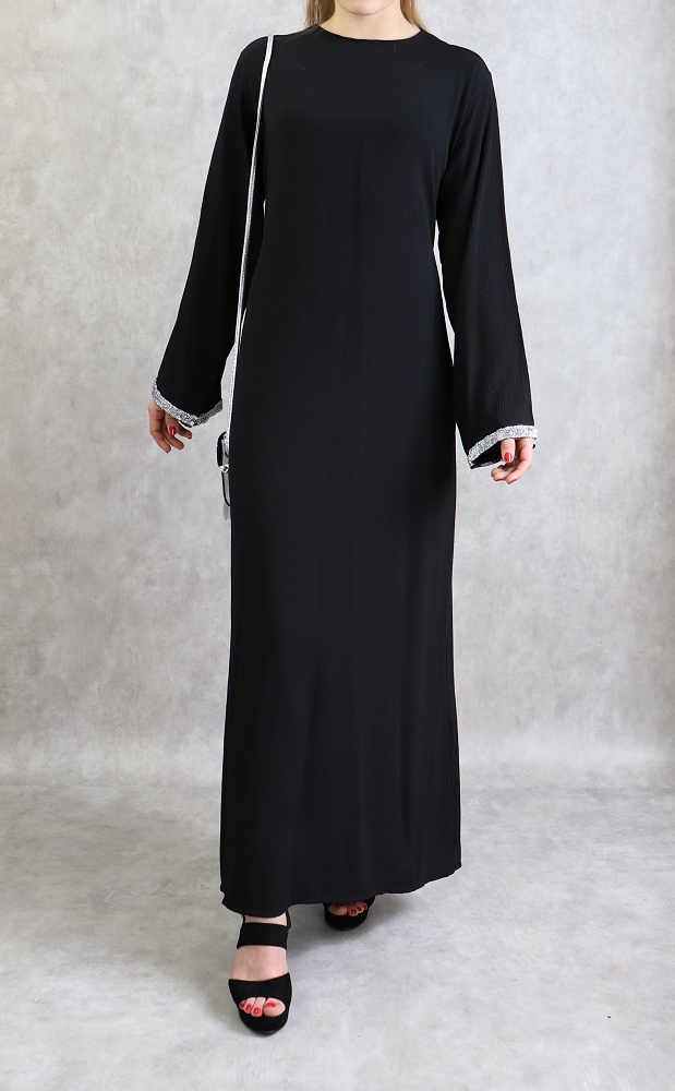 Robe longue avec strass de couleur noire Vetement & Accessoire