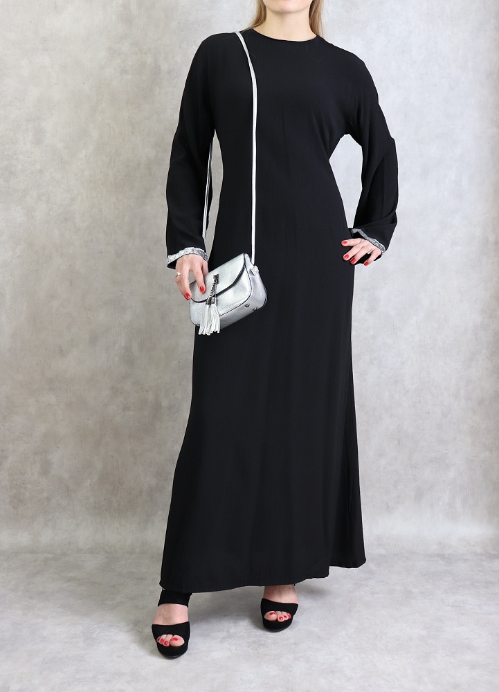 Robe longue casual (Mode pudique - Modest Fashion) - Couleur Noir et blanc - REF. 34007 (29.00 €)