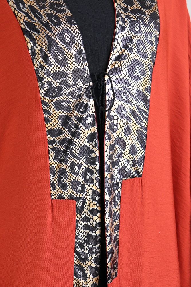 Kimono papillon avec parties satinees et effet python - Couleur rouge brique