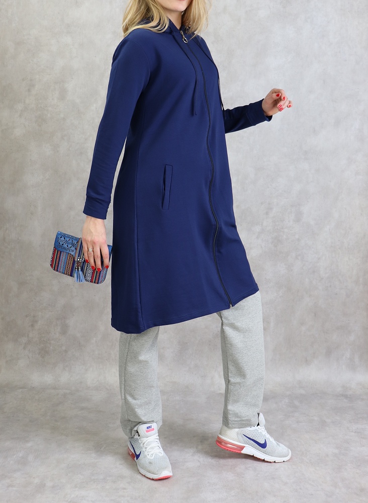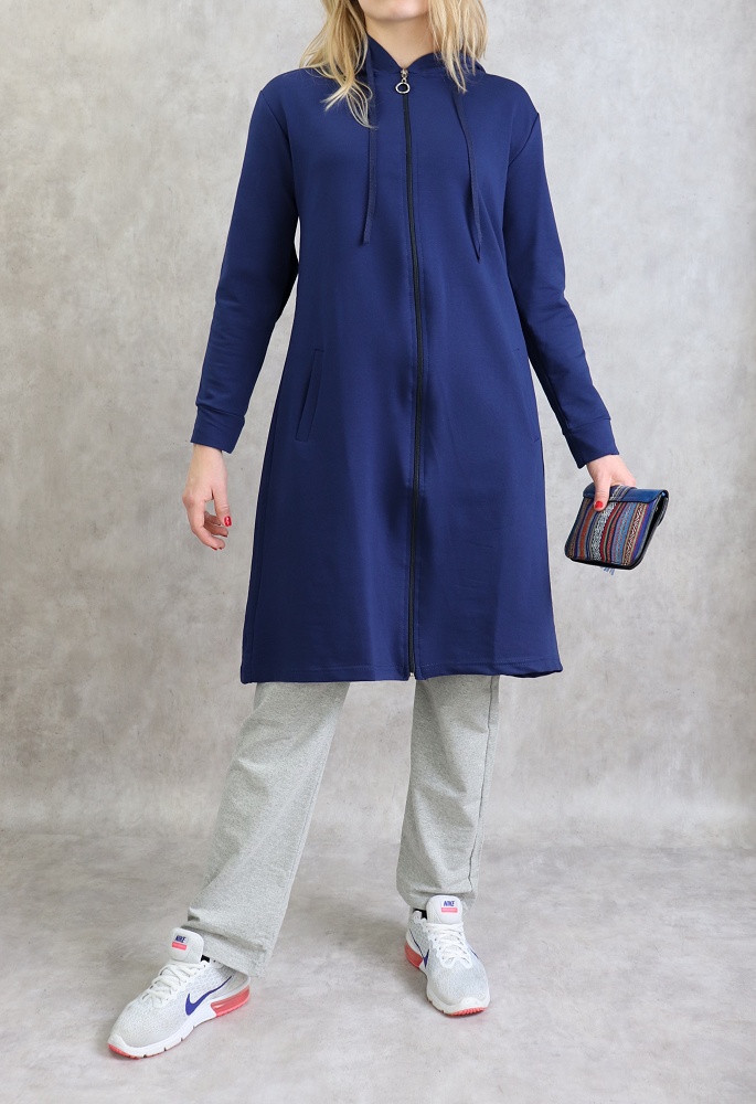 Robe décontractée longue à capuche (Sportwears pour femmes musulmanes voilées) - Couleur bleu marine - REF. 34580 (19.90 €)