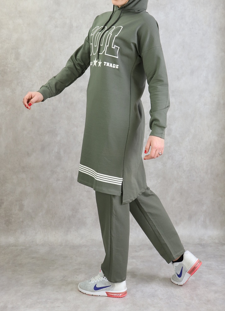 Survetement femme 2 pieces a capuche "COOL" de couleur kaki