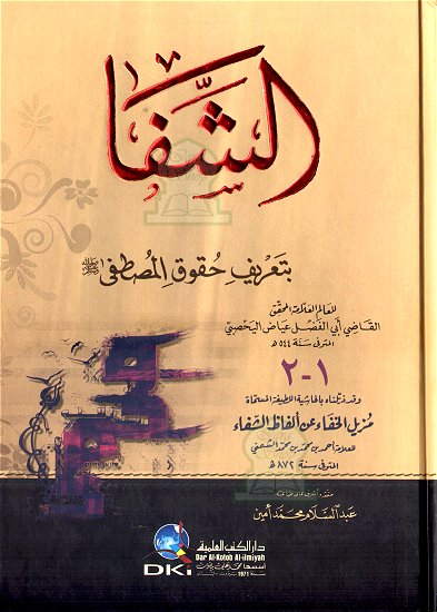 كتاب في الفضائل ومناقب النبي صلى الله عليه وسلم، وهو من أجل الكتب في موضوعه كيف لا وقد كتبه شيخ المتقين وسيد الورعين والمحبين للنبي صلى الله عليه وسلم القاضي أبو الفضل عياض، فقد جمع فيه كل شمائل النبي صلى الله عليه وسلم وأوصافه وما يجب في حقه ولعله لم يغفل شيئا يتعلق بحضرته صلى الله عليه وسلم من قريب أو بعيد لذا سماه الشفا، وبذيله حاشية " مزيل الخفاء عن ألفاظ الشفاء " للشيخ محمد الشمني وقمنا بتحقيقه زيادة في الفائدة