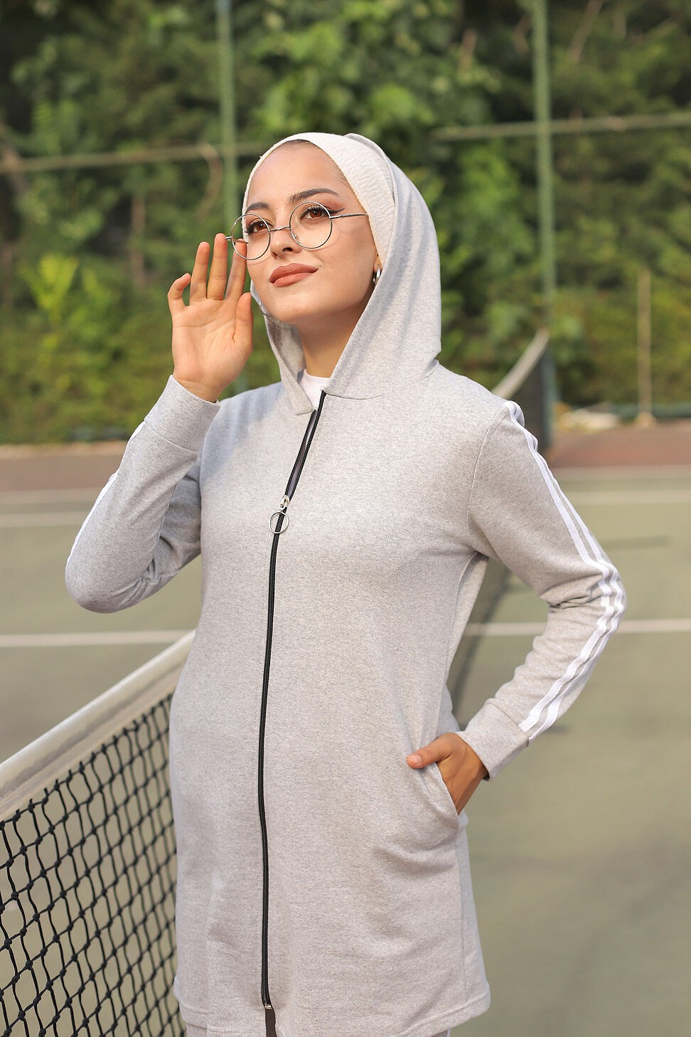 Robe à capuche style décontracté (Vêtement hijab moderne et sport) - Couleur gris - REF. 35509 (28.00 €)