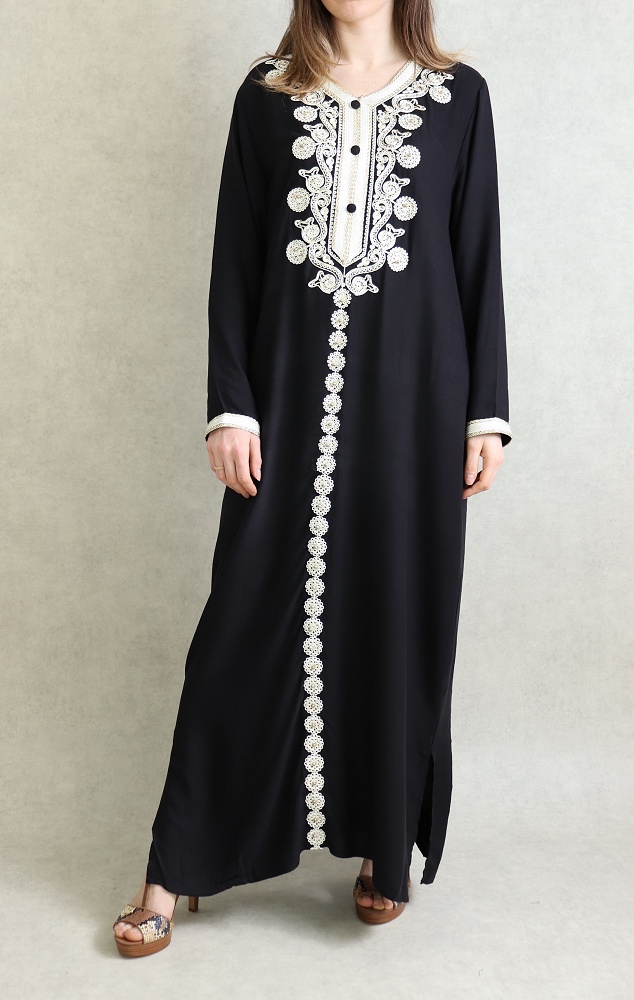Robe Abaya ample Dubaï noire de qualité avec nombreuses broderies et strass idéale pour la fête de l'Aïd - REF. 38121 (45.00 €)