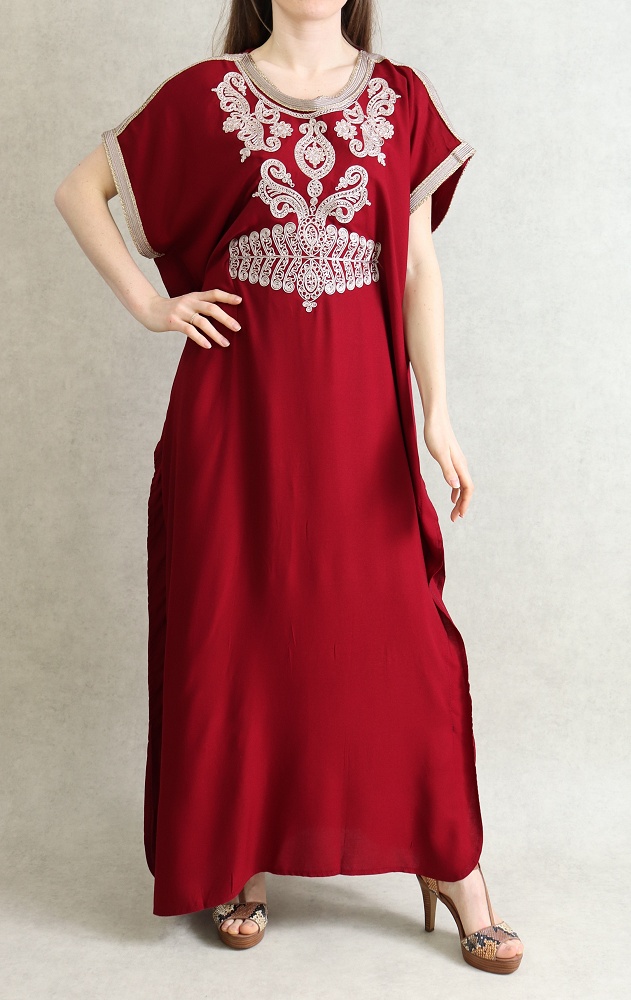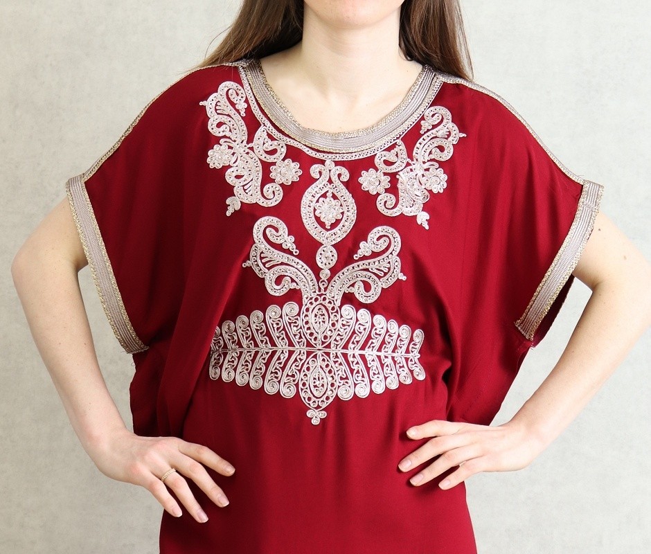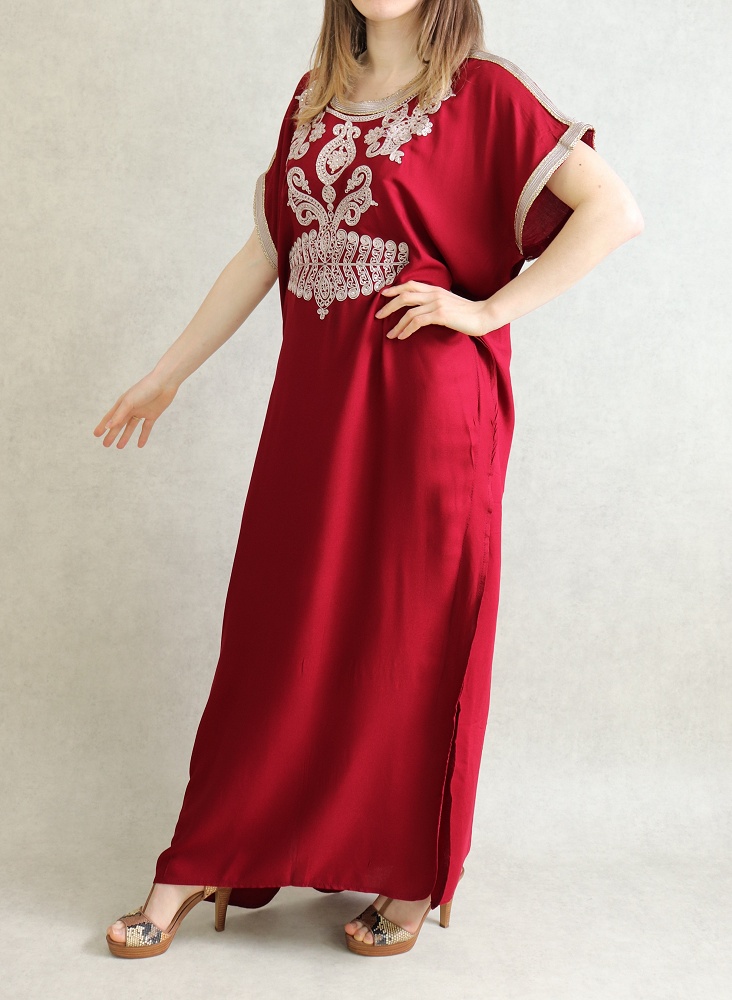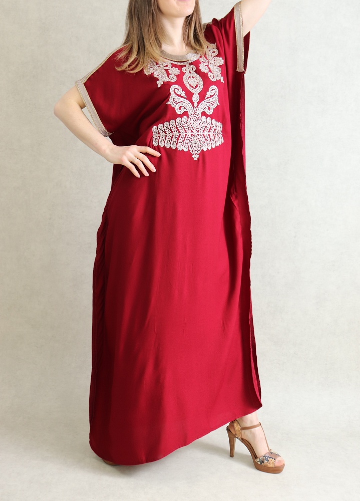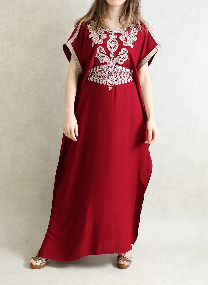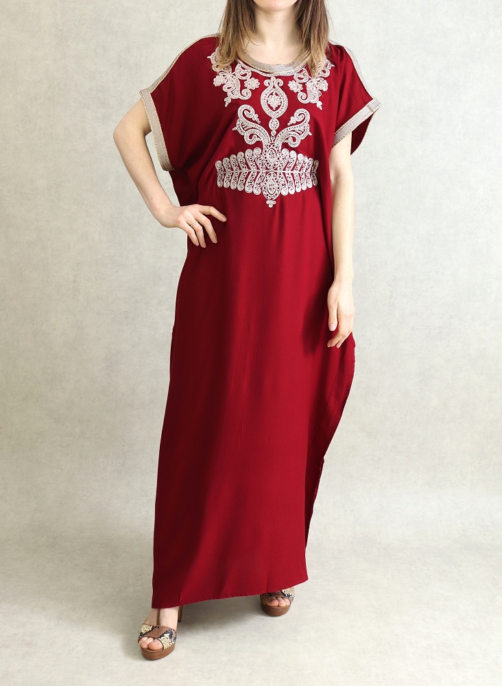 Robe orientale manches courtes style tunisien avec broderies - Couleur Bordeaux Vetement & Accessoire