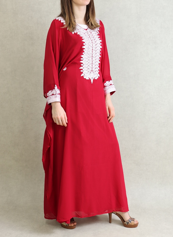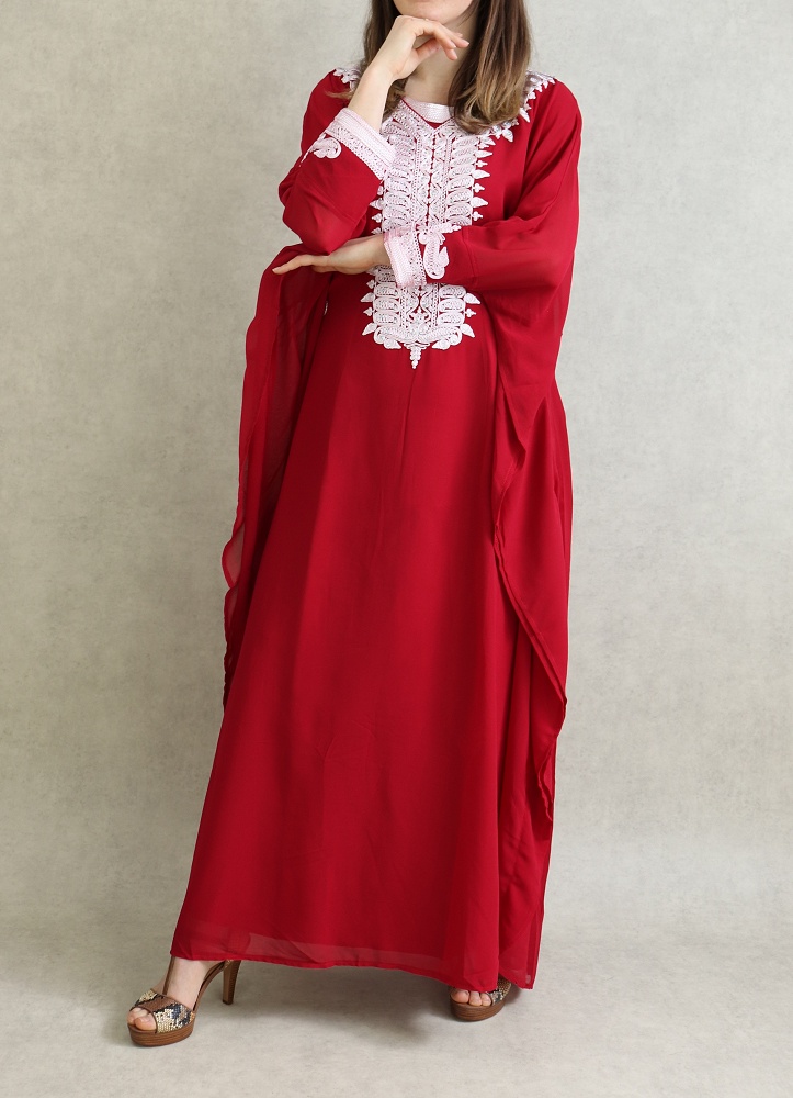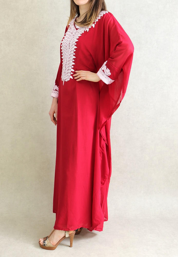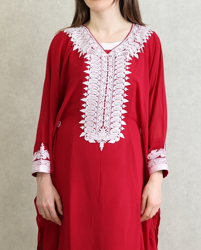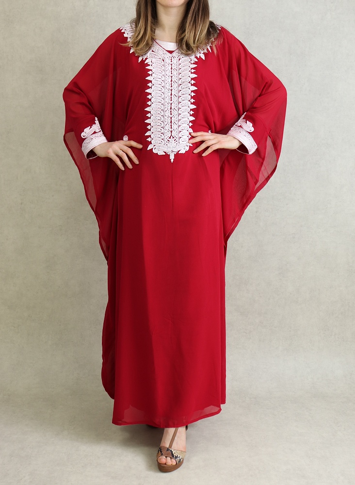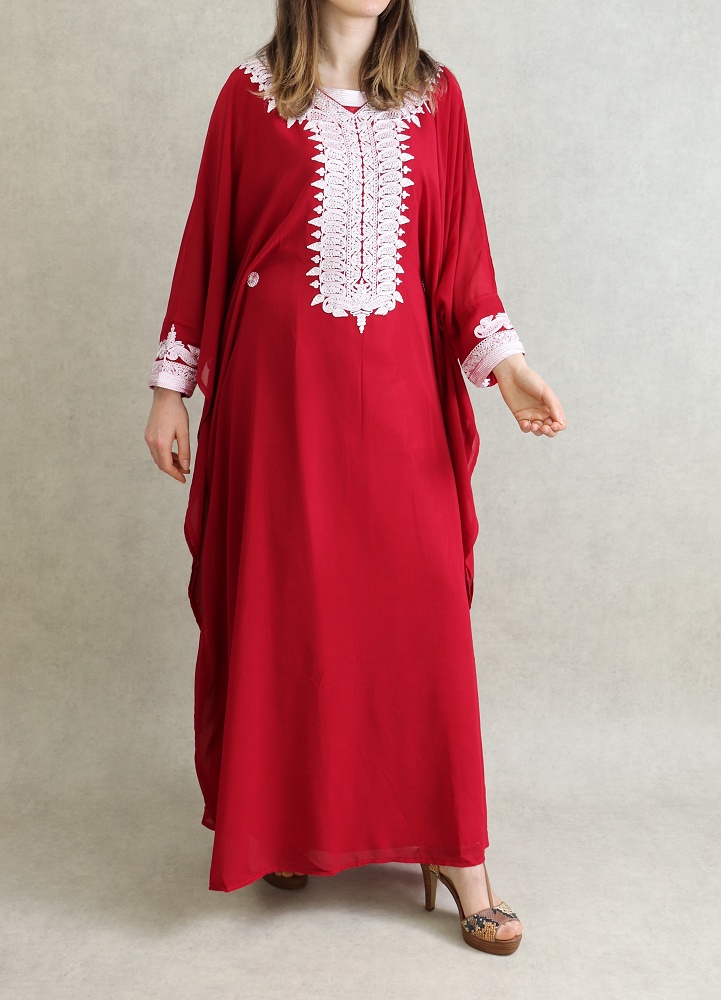 Robe Orientale Algérienne manches courtes avec broderies style simple pour la maison - Couleur rouge - REF. 33342 (25.00 €)