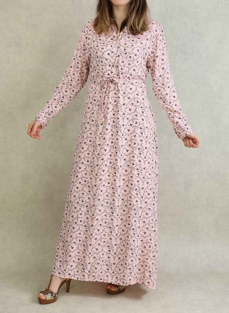 Apportez une touche fleurie à votre penderie avec cette robe rose clair à motif prairie, portez-la avec des sandales pour un look estival réussi.