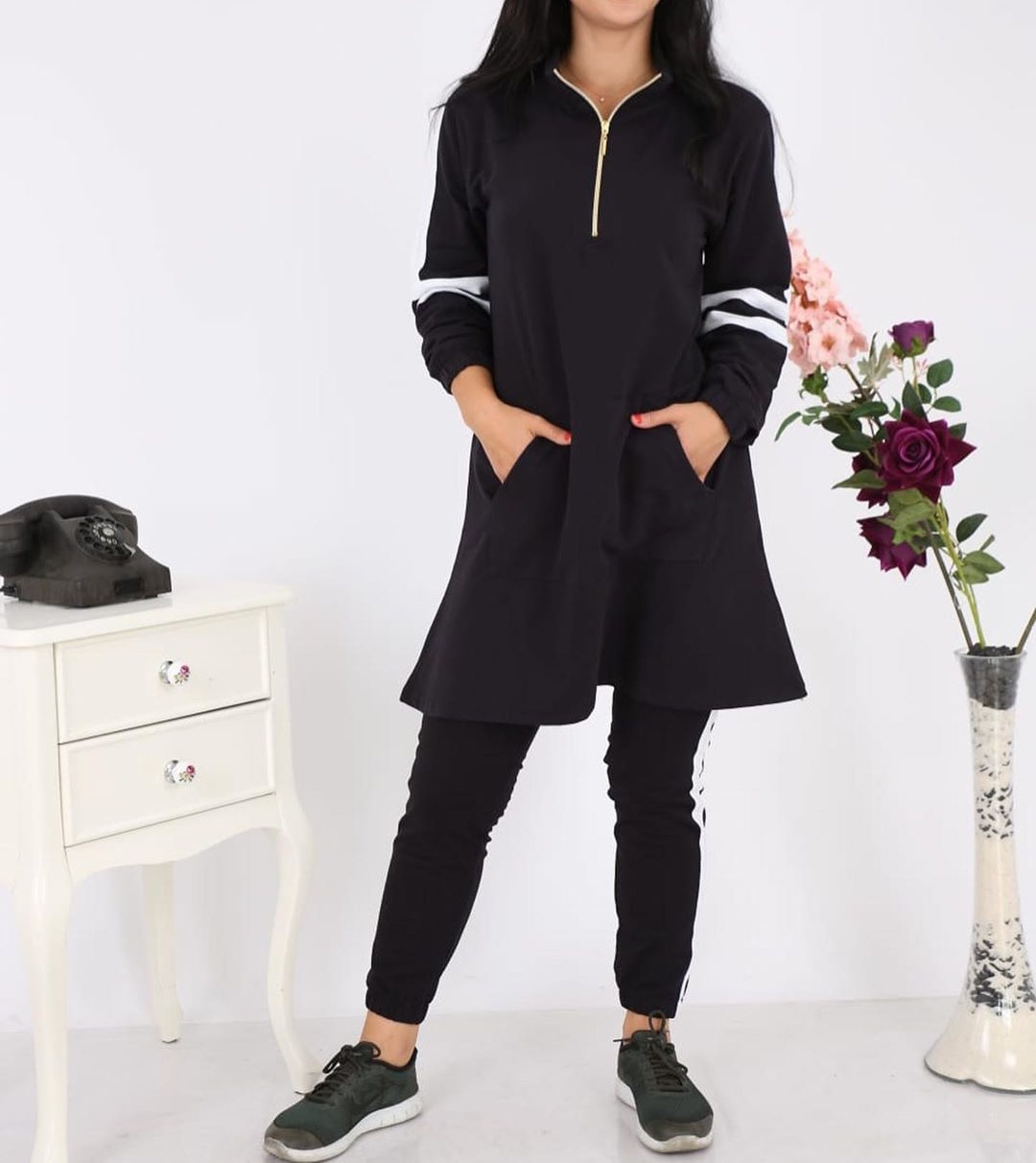 Survêtement 2 pièces à bandes blanches - Tenue de sport pour femme voilée (Plusieurs couleurs disponibles) - REF. 31642 (29.90 €)
