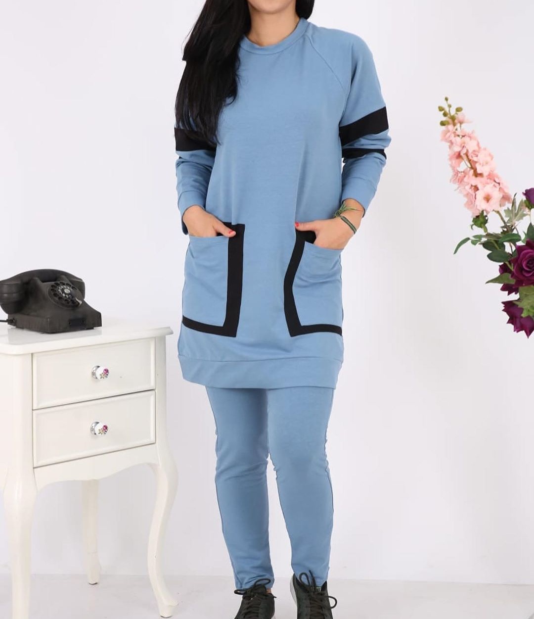 Survêtement femme 2 pièces à grandes poches de couleur bleu acier (Grandes tailles disponibles) Vetement & Accessoire