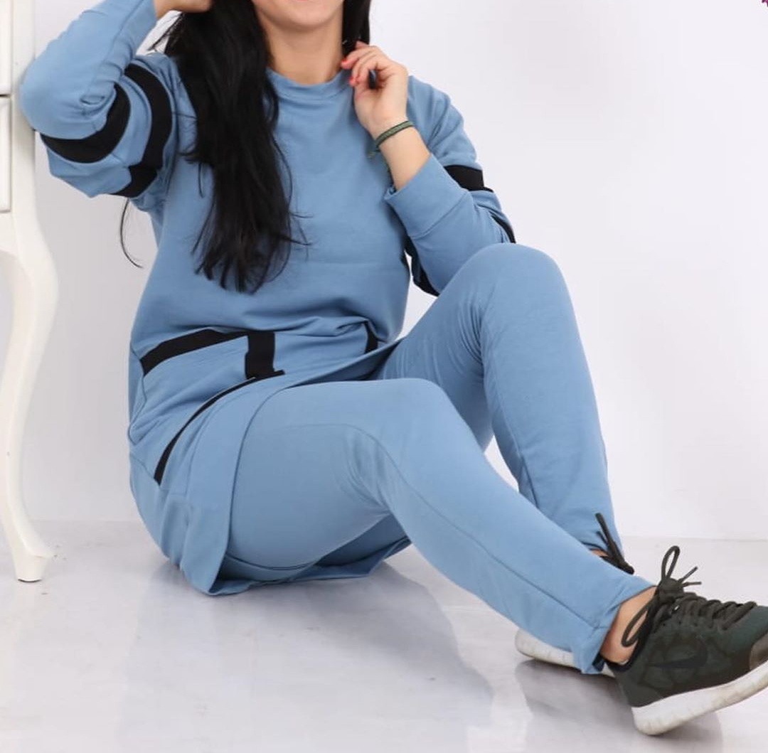 Ensemble 2 pièces tunique + pantalon couleur bleue - Tenue ample et mastour pour femme musulmane - REF. 30588 (35.00 €)